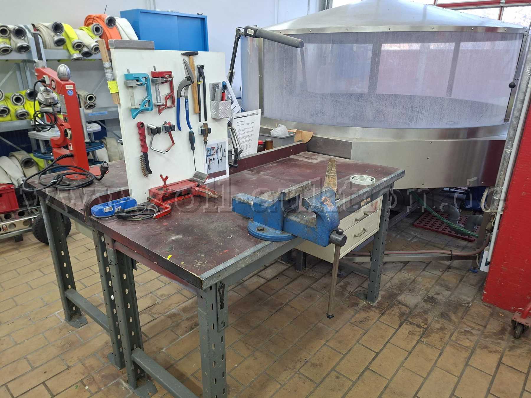 Dazu kommen 2 Werkbänke zur Reparatur und Einbinden von Druckschläuchen mit Vulkanisiergerät und Einbindegerät inkl. dem noch vorhandenem Zubehör.
