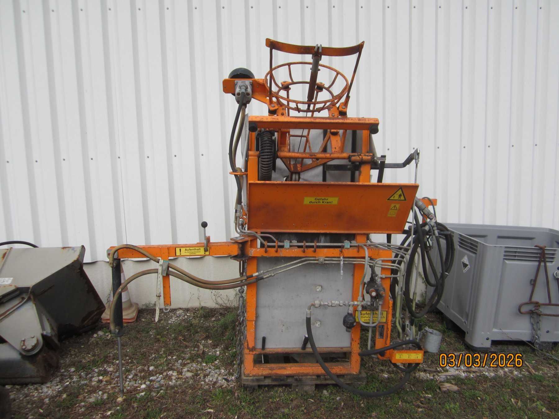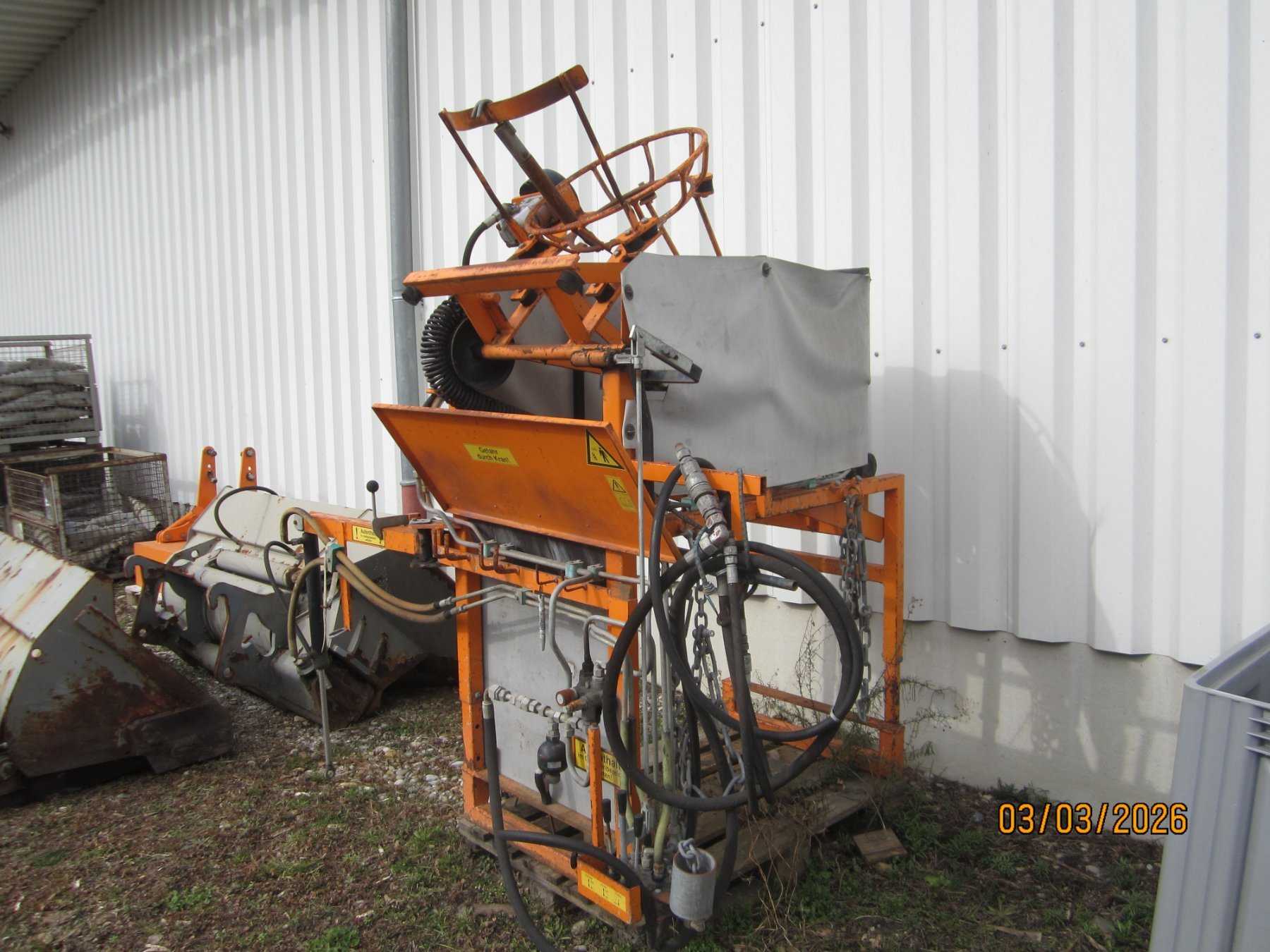 Die Hydraulikschläuche sind überaltert. Die Stützen sind zum Teil verbogen. Das CE-Kennzeichen ist