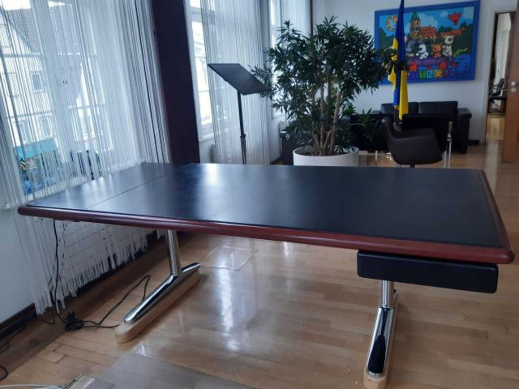 Angeboten wird ein gebrauchter, hochwertiger Designerschreibtisch mit Verwaltungsgeschichte (Oberbürgermeister).