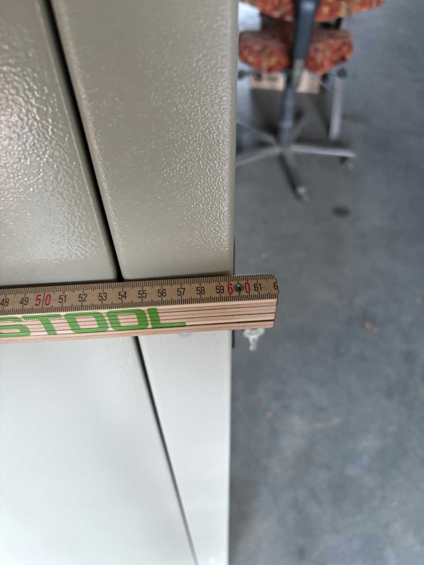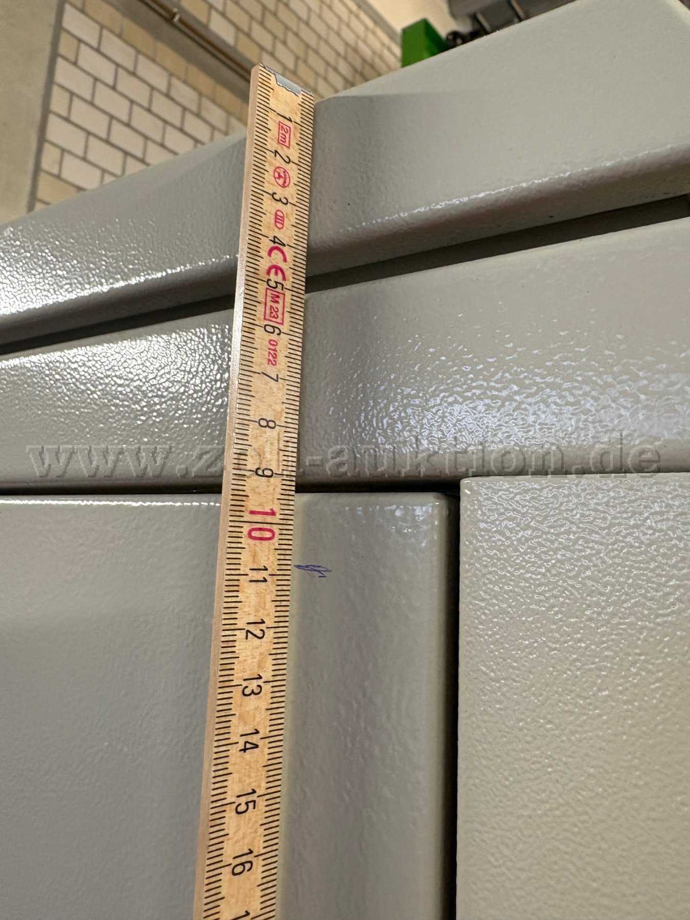 Gebrauchsspuren: Der Serverschrank weist seinem Alter entsprechende, Gebrauchsspuren auf. Dazu gehören Kratzer, Lackabnutzungen oder kleinere Dellen.