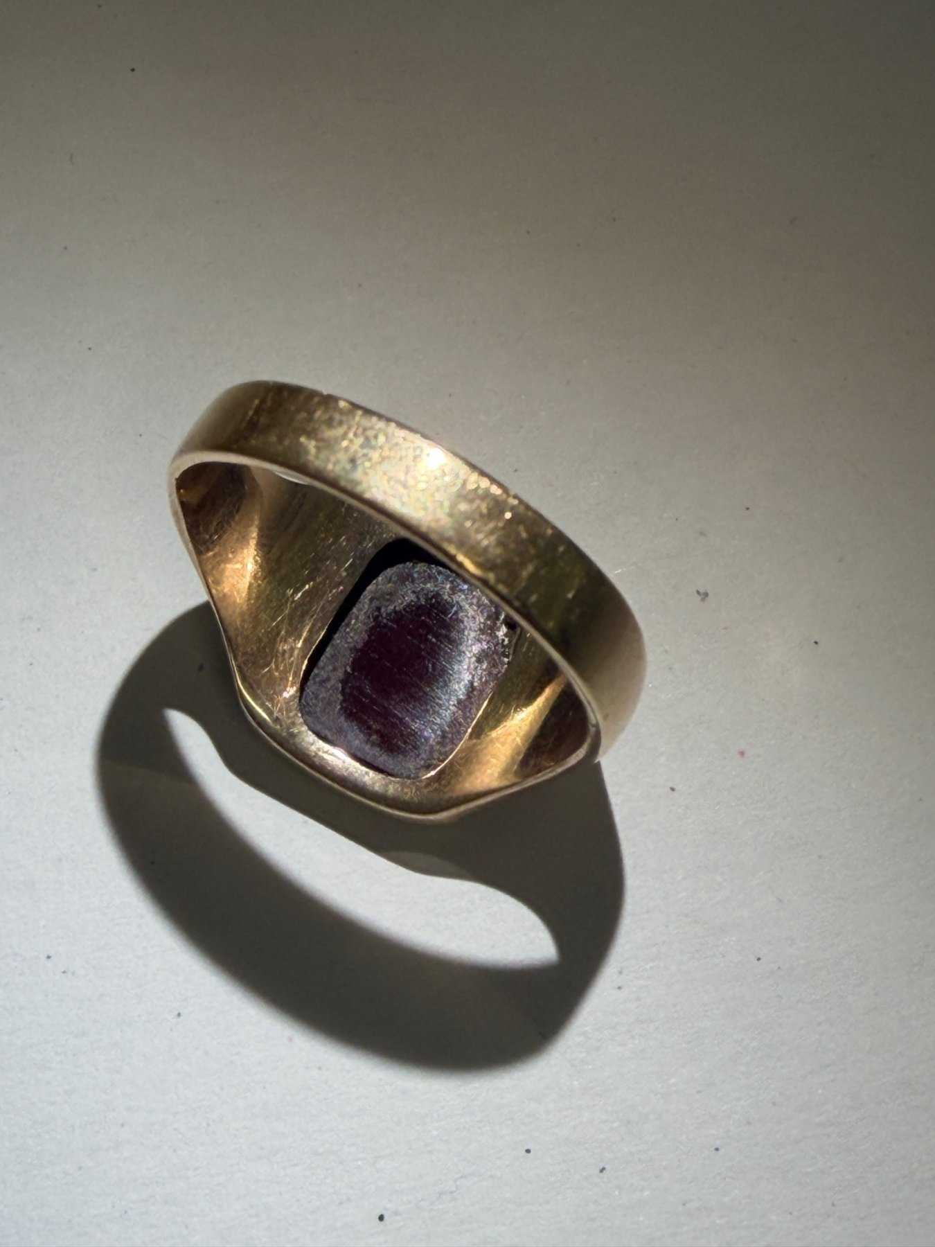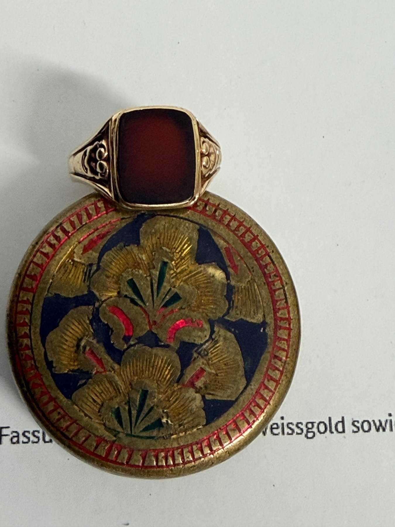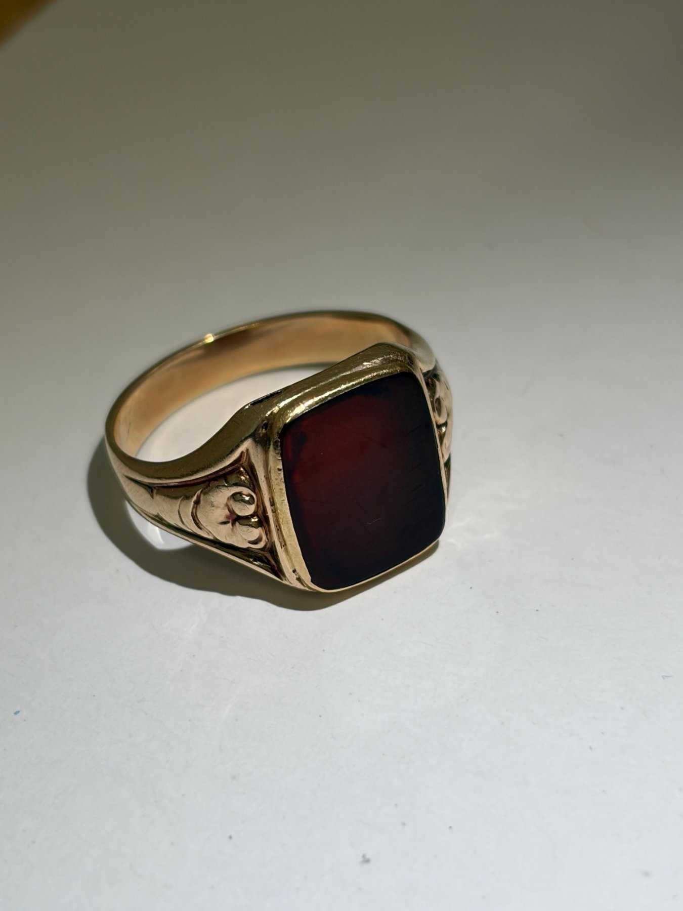 Zur Versteigerung kommt ein Siegelring 585 Gelbgold mit einem ca. 1g schweren rot/braunen Stein.