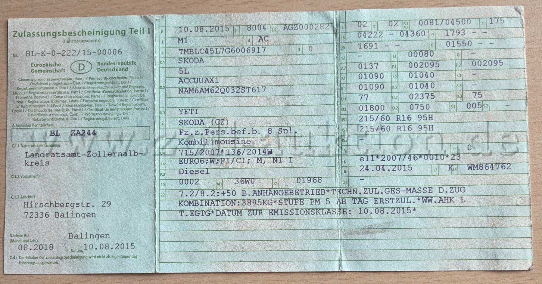 Erstzulassung: 10.08.2015