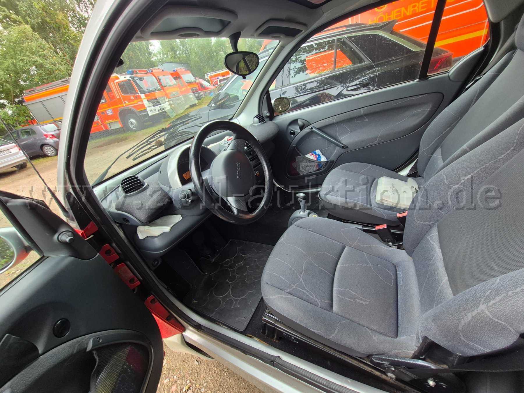 Die Funkanlage wurde ausgebaut. Das Fahrzeug wird ohne jegliche Beladung versteigert. Alters- und Nutzungsbedingt weist das Fahrzeug Kratzer, kleine Dellen und kleine Roststellen auf. An den Einstiegstellen ist der Lack teilweise abgeplatzt oder verschrammt.
