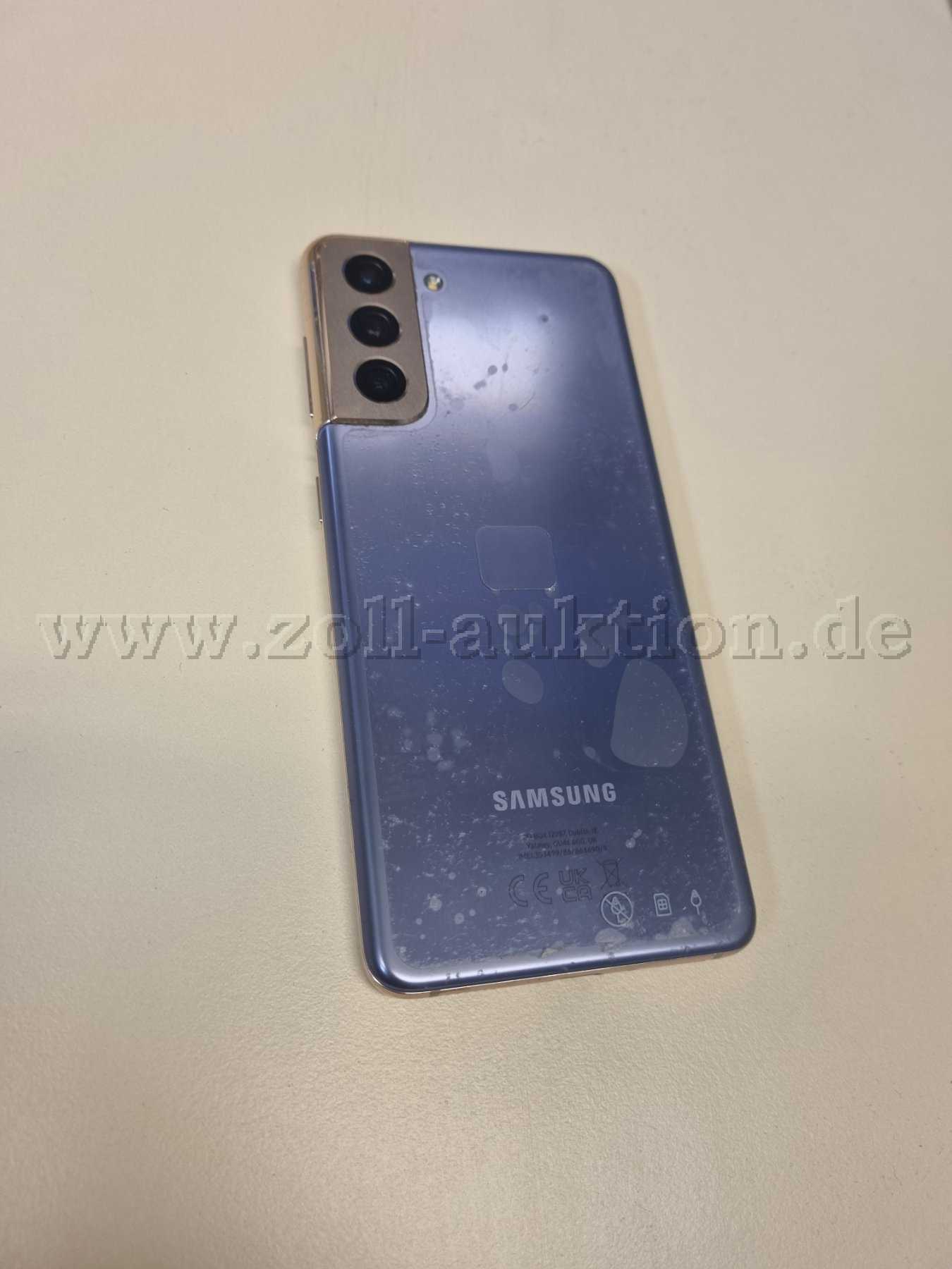 Das Samsung Galaxy S21 5G- violett - 256 GB hat einige Risse am Display. Der Rahmen sowie die Folie auf der Rückseite sind stark zerkratzt.