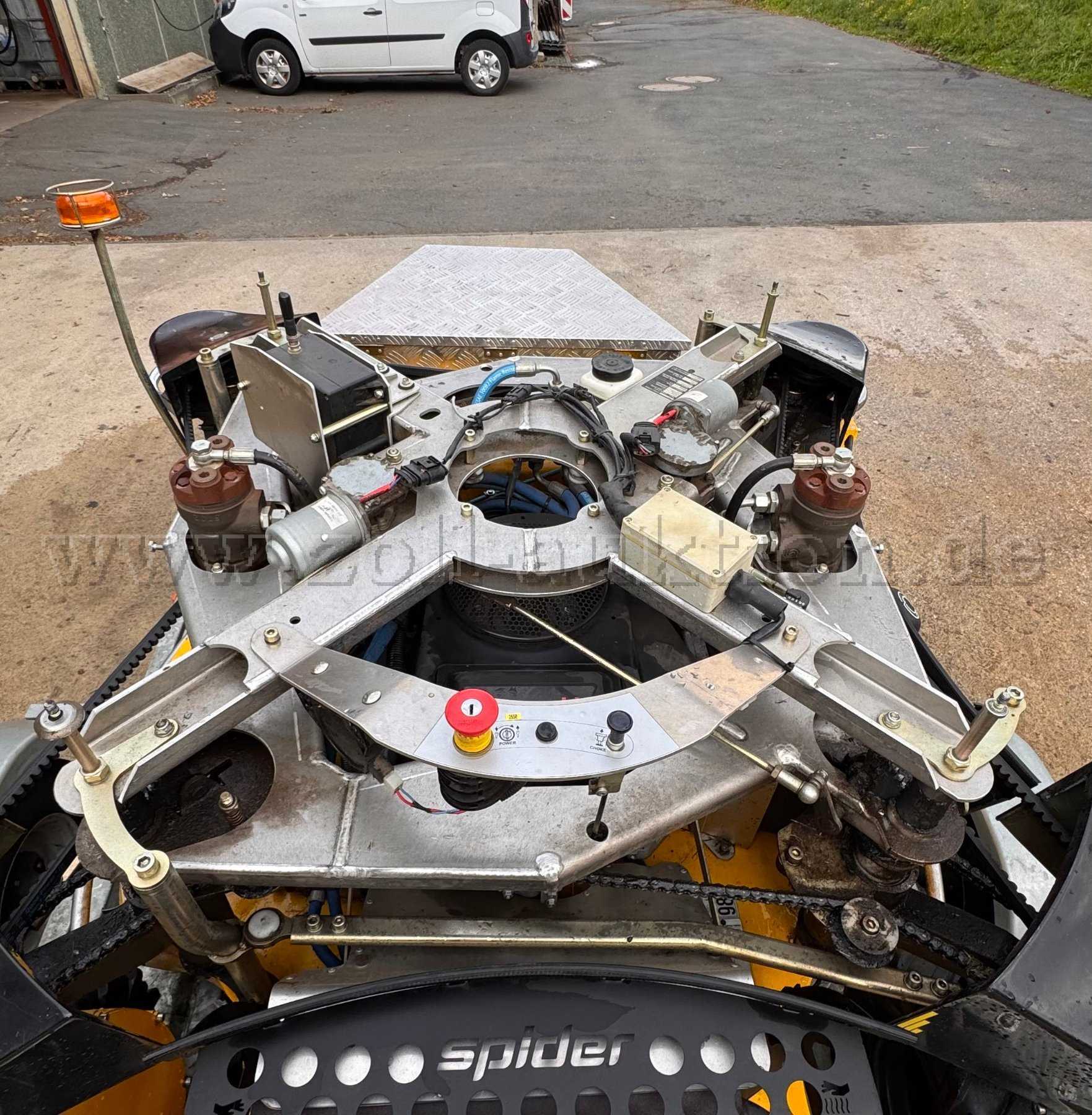 Dieser SPIDER ILD02 mit Seilwinde ist Erstinbetriebnahme 2017, hat 212 Betriebsstunden lt. Zähler und befindet sich in einem gepflegten Gesamtzustand bis auf ein paar Lackabplatzer unten an den Seiten und oben an den 4 Radabdeckungen ist auch der Lackabgeplatzt (s.Bilder), sowie Abschlürfungen an der linken Seite unten (s.Bilder). Die vorhandenen Verschleißspuren am Mäher wirken sich nicht nachteilig auf die Einsatzbereitschaft dieses Gerätes aus. Alle Sicherheitseinrichtungen am Gerät sind vollumfänglich vorhanden. Der Mäher kann sofort in Betrieb genommen werden. Das Gerät wurde nicht UVV geprüft!