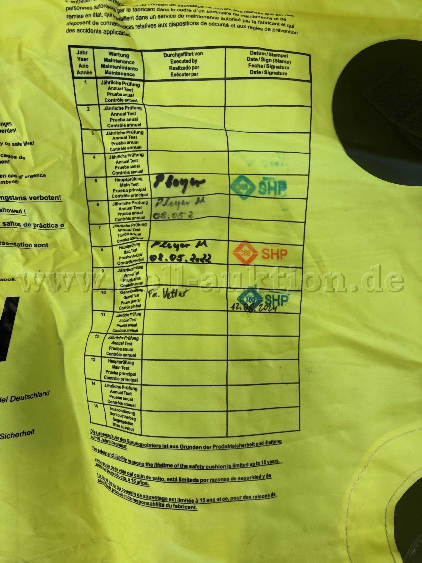 Der Sprungretter wurde 2014 angeschafft. Er ist unbeschädigt und voll einsatzbereit, weißt lediglich kleinere Verschmutzungen auf.