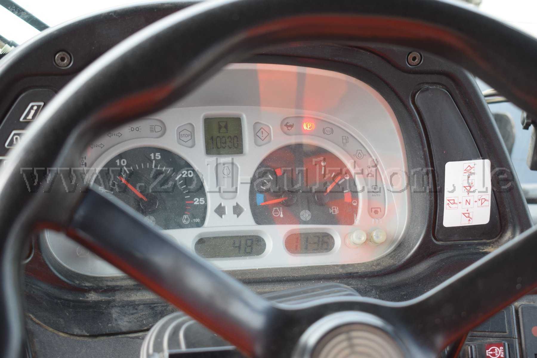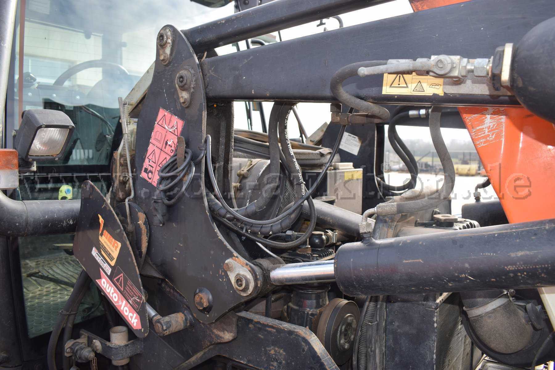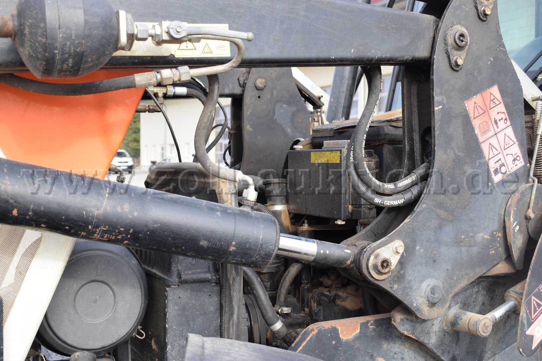 Das Fahrzeug verfügt über einen Frontlader der Marke Hydrac mit Auto-Lock-System. Die Hubkraft beträgt 1.800 - 2.600 kg.