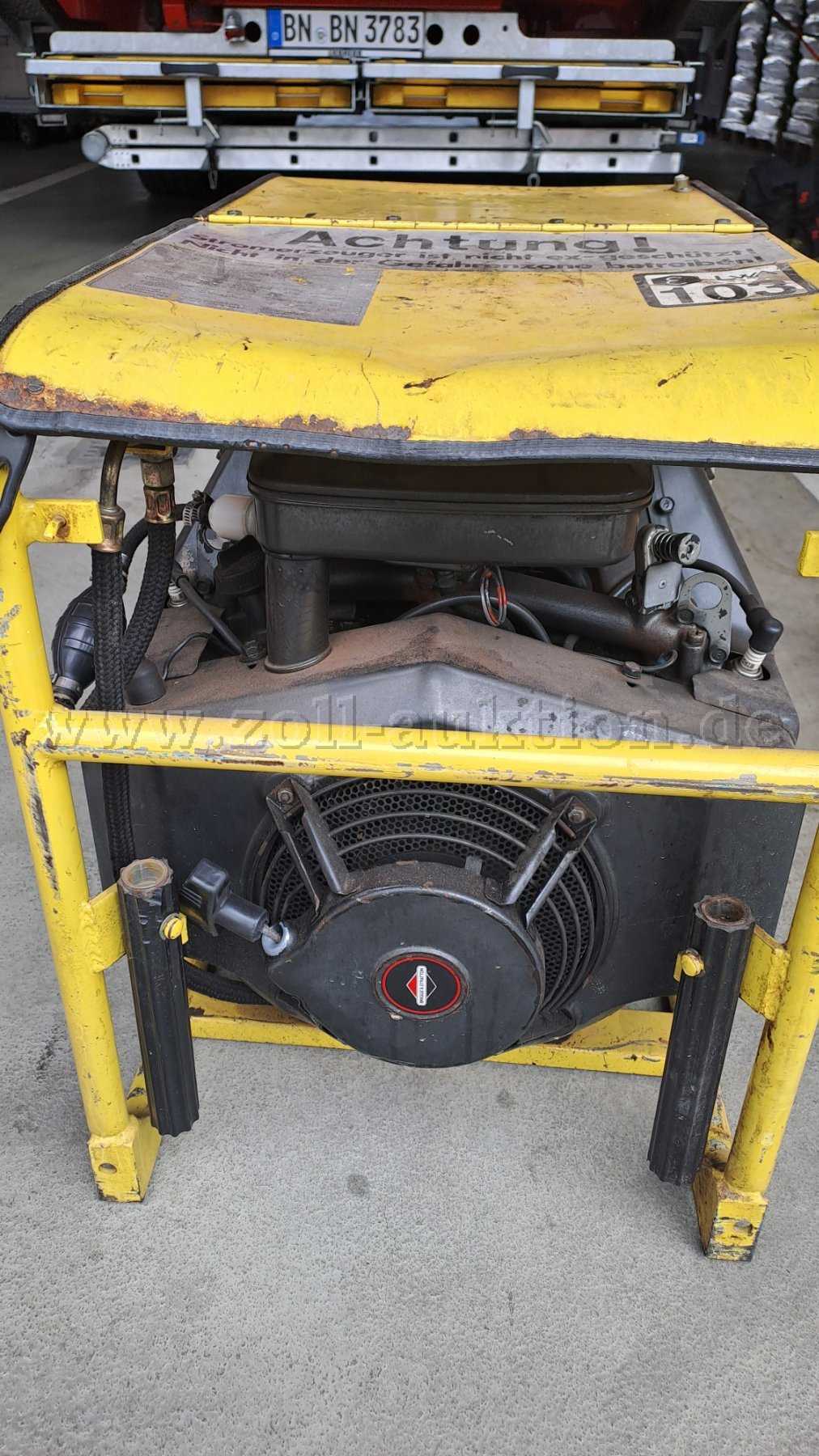 Der Stromerzeuger weißt einige altersbedingte Beschädigungen auf.