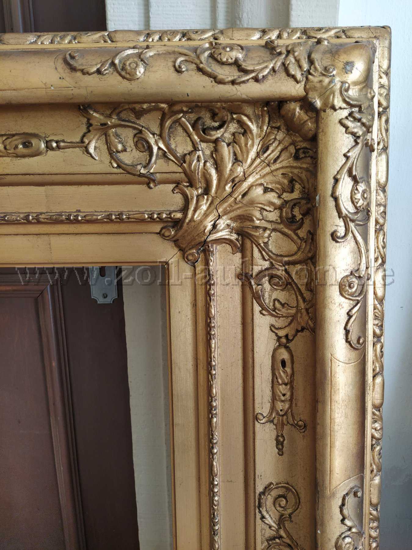 Der Rahmen ist restaurierungsbedürftig - auf der Vorderseite befinden sich viele Risse und Abplatzungen (siehe Fotos).