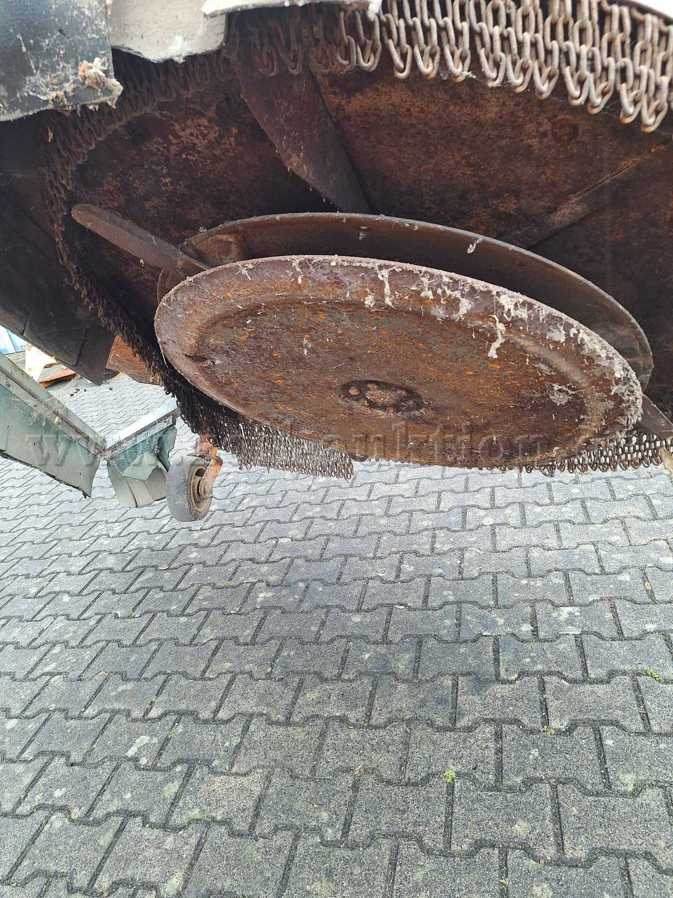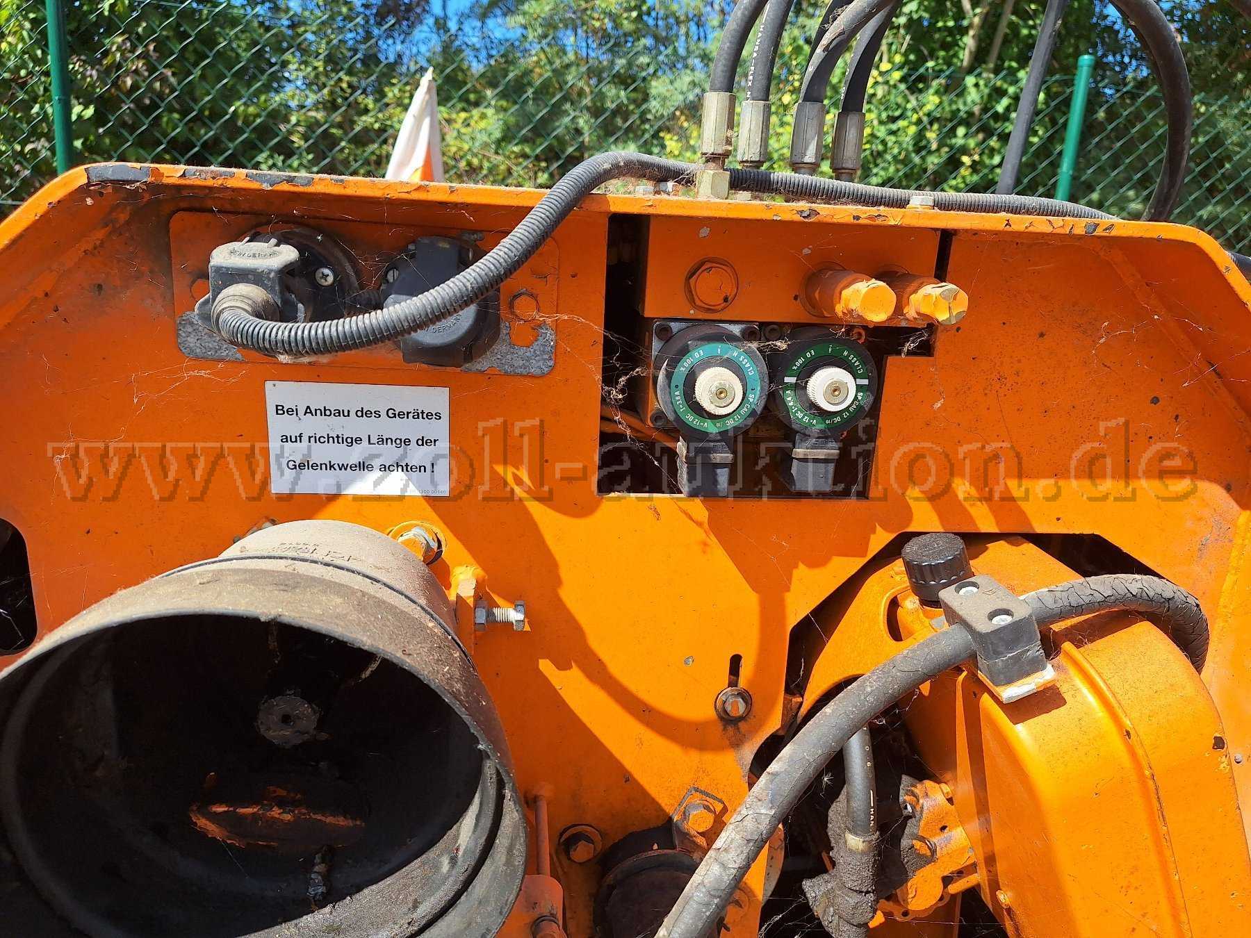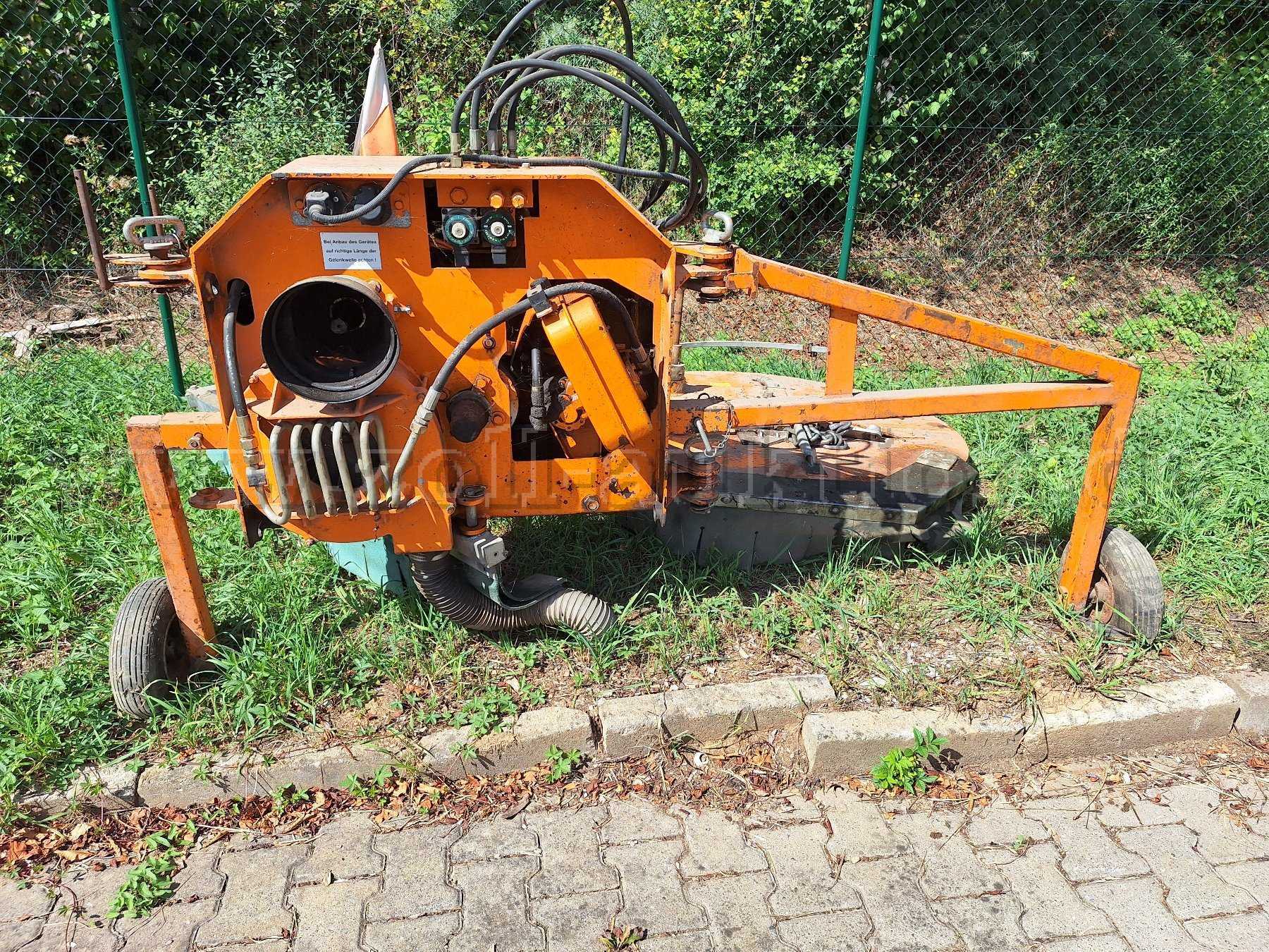 Dieses Arbeitsgerät wurde bei uns an einem Unimog angebaut. Leider nur selten verwendet, da unsere Unimog nur eine Zapfwelle haben. Wie auf den Bildern zu sehen ist der Lack etwas ausgeblichen, bzw. sind leichte Lackschäden zu erkennen! Ebenfalls müssten die beiden Laufräder erneuert werden. Ersatzteillisten sind vorhanden. Die Maschine war im Juli 2010 noch funktionsfähig. Nun liegt dieses Gerät schon jahrelang und wir wissen nicht, ob es noch funktioniert! Deshalb versteigern wir es als Teileträger.