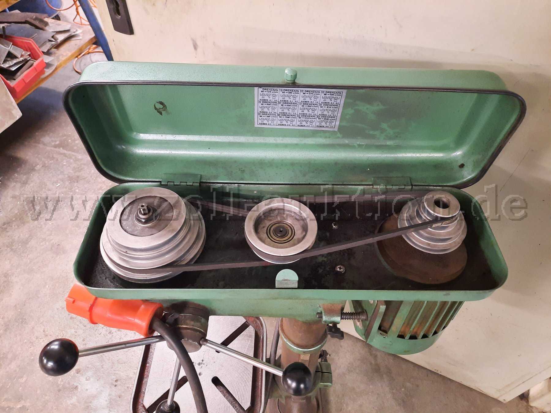 funktionsfähig, Motor läuft , Verzahnung der Pinole ausgeschlagen, Tischverstellung schwergängig, seitliche Gehäuseabdeckung fehlt, verdreckt, verkratzt