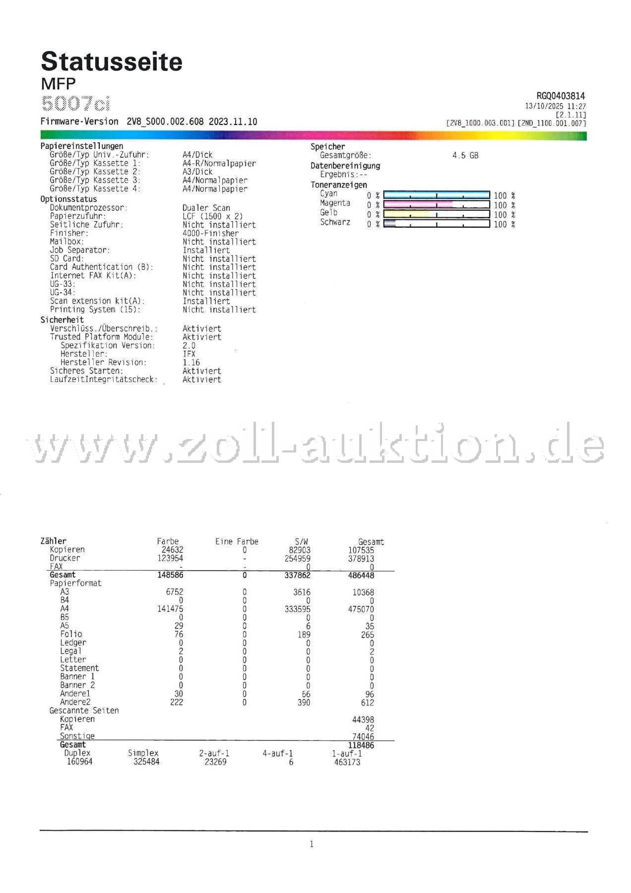 Versteigert wird ein Triumph-Adler 5007ci Drucker + Finisher.