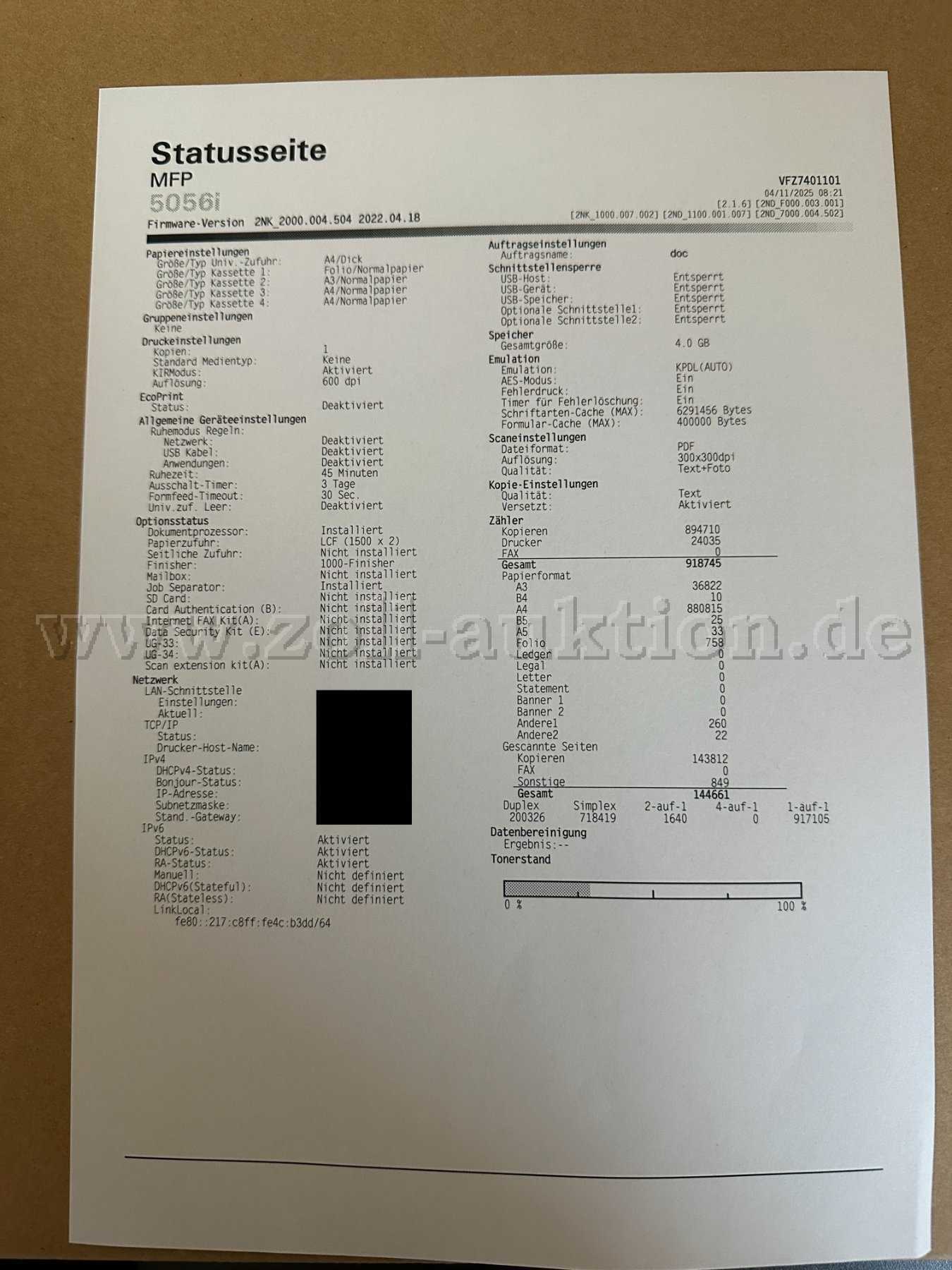 Versteigert wird ein Triumph-Adler 5056i Drucker + Finisher.