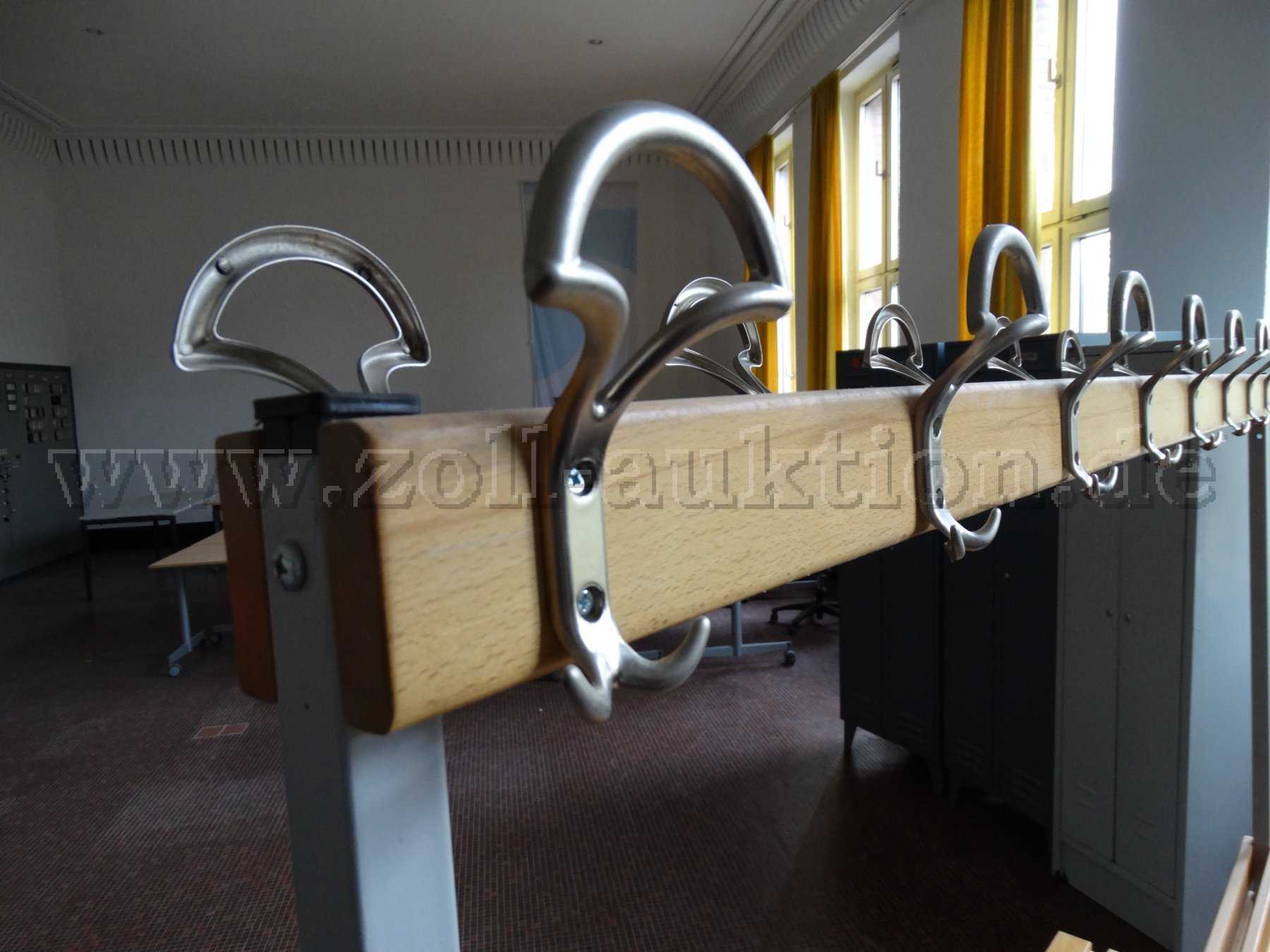 Kratzer vorhanden, Verschmutzung durch Lagerung und Benutzung vorhanden, Farbabplatzungen an den Haken vorhanden, Rostansatz bei den Fußgestell vorhanden