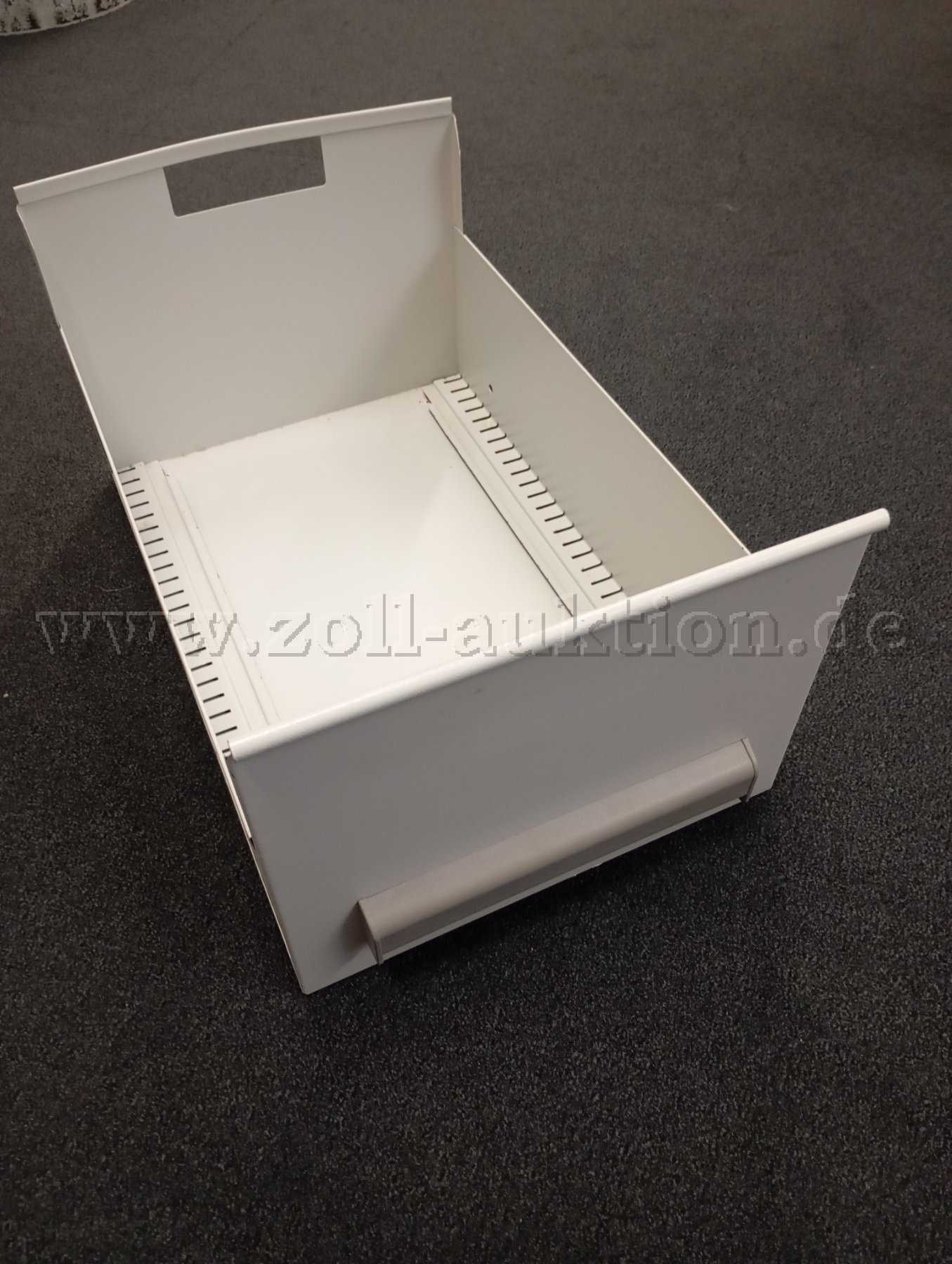 Veräußert wird ein vertikales Umlaufregal mit 25 Einschüben von der Firma Kardex aus dem Jahr 1999. Das Umlaufregal wurde zum Aufbewahren von Fotobilddaten genutzt. Das Umlaufregal wurde im Behördenumfeld eingesetzt und weist auf allen Seiten Kratzer und Schutz auf. Das Umlaufregal ist mit einer Steuerung und einem Ablagetisch ausgestattet. Mit der Steuerung werden die einzelnen Regalfächer angesteuert. Das Umlaufregal muss selbst demontiert, verladen und abgeholt werden. Eine Wartung wurde bis zum 31.12.2025 durchgeführt. Eine Funktionsprüfung wurde erfolgreich durchgeführt. Eine CE-Kennzeichnung ist vorhanden. Sie erhalten für das Umlaufregal einen Dokumentationsordner dazu.