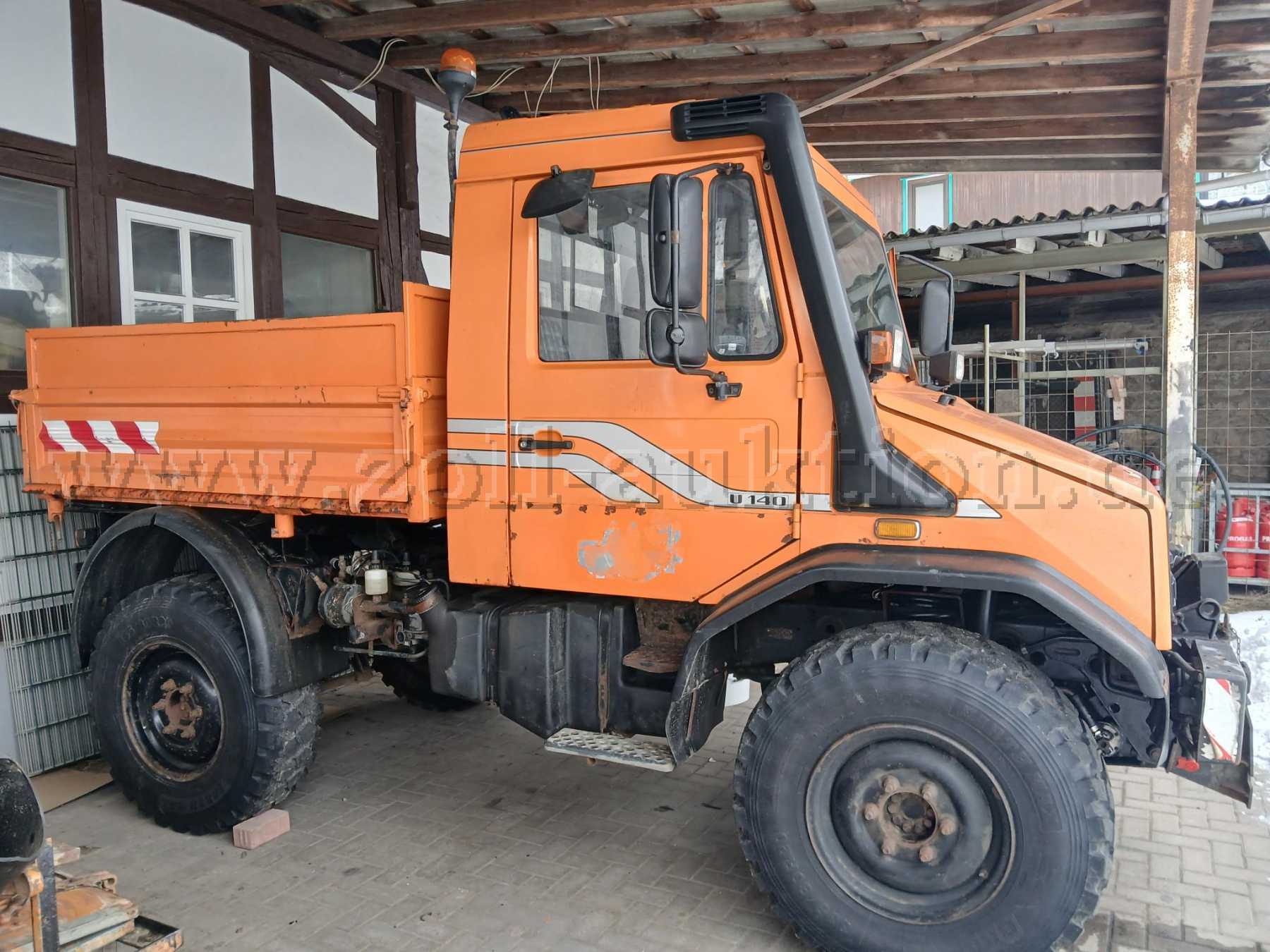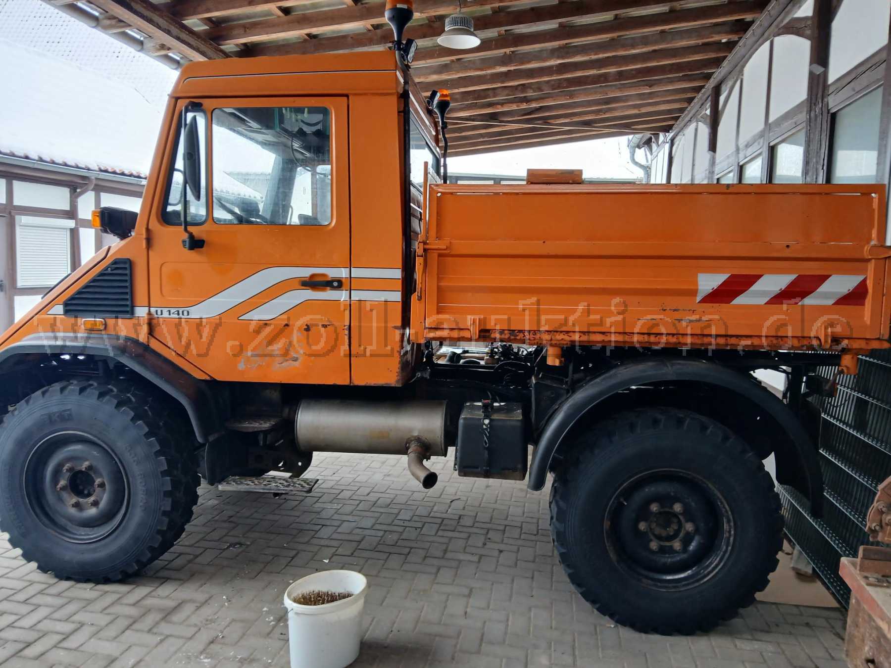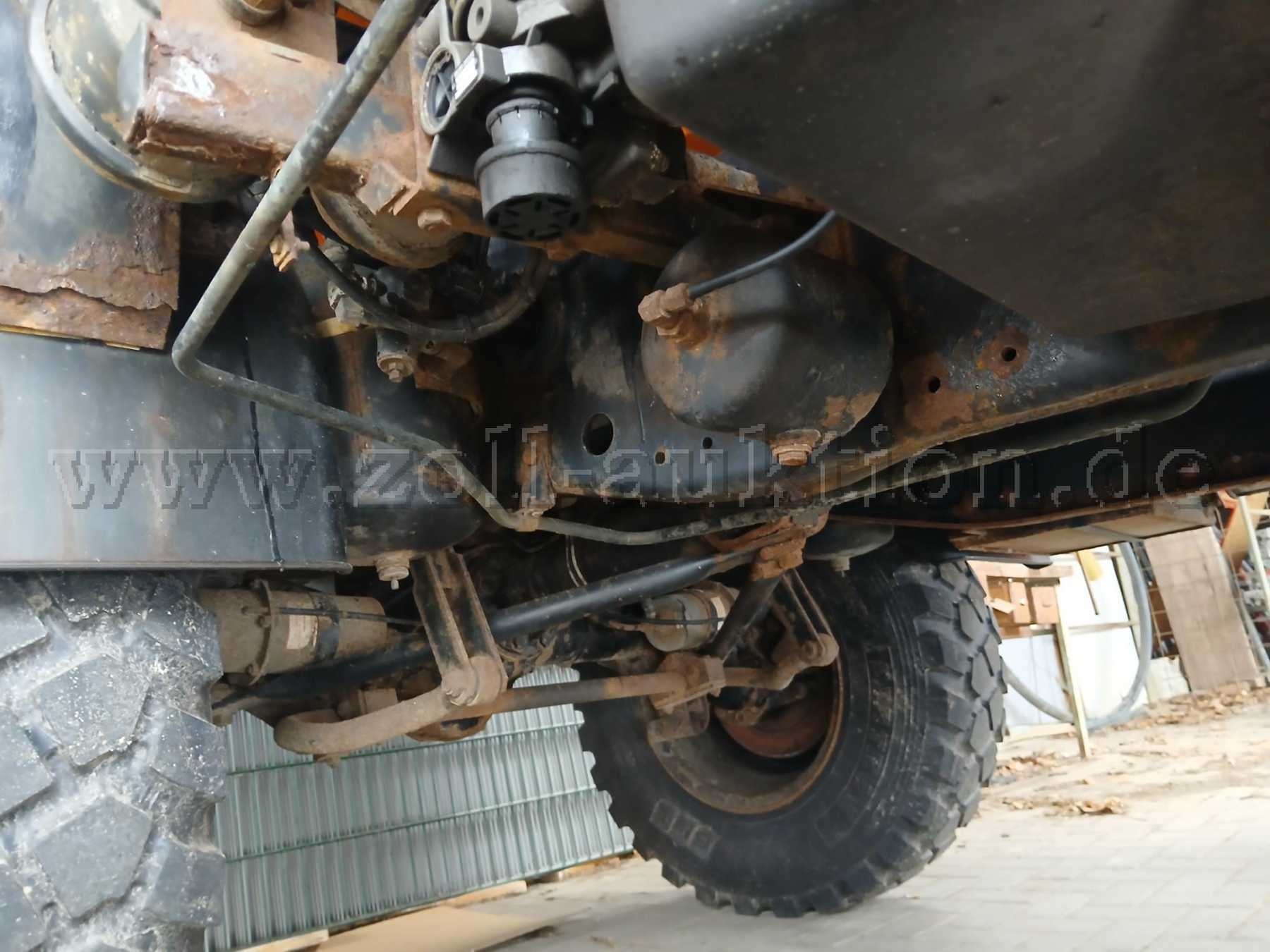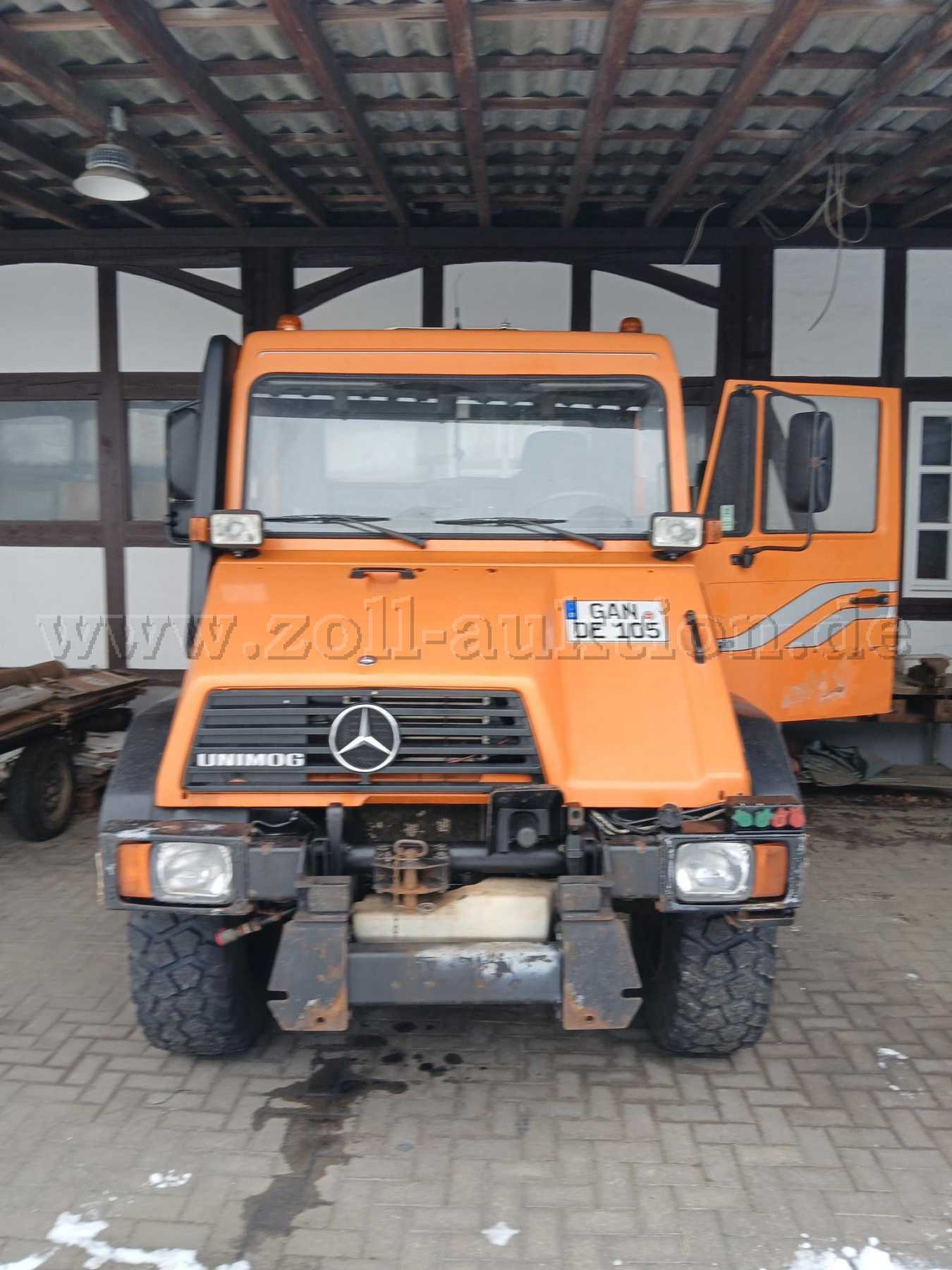 Das Fahrzeug war bis zum Schluss im täglichen Einsatz und wurde aufgrund eines undefinierten Ölaustrittes außerdienstgestellt. Bestandsteil der Auktion ist lediglich der Unimog, alle weiteren auf den Bildern erkennbare Gegenstände werden nicht versteigert.