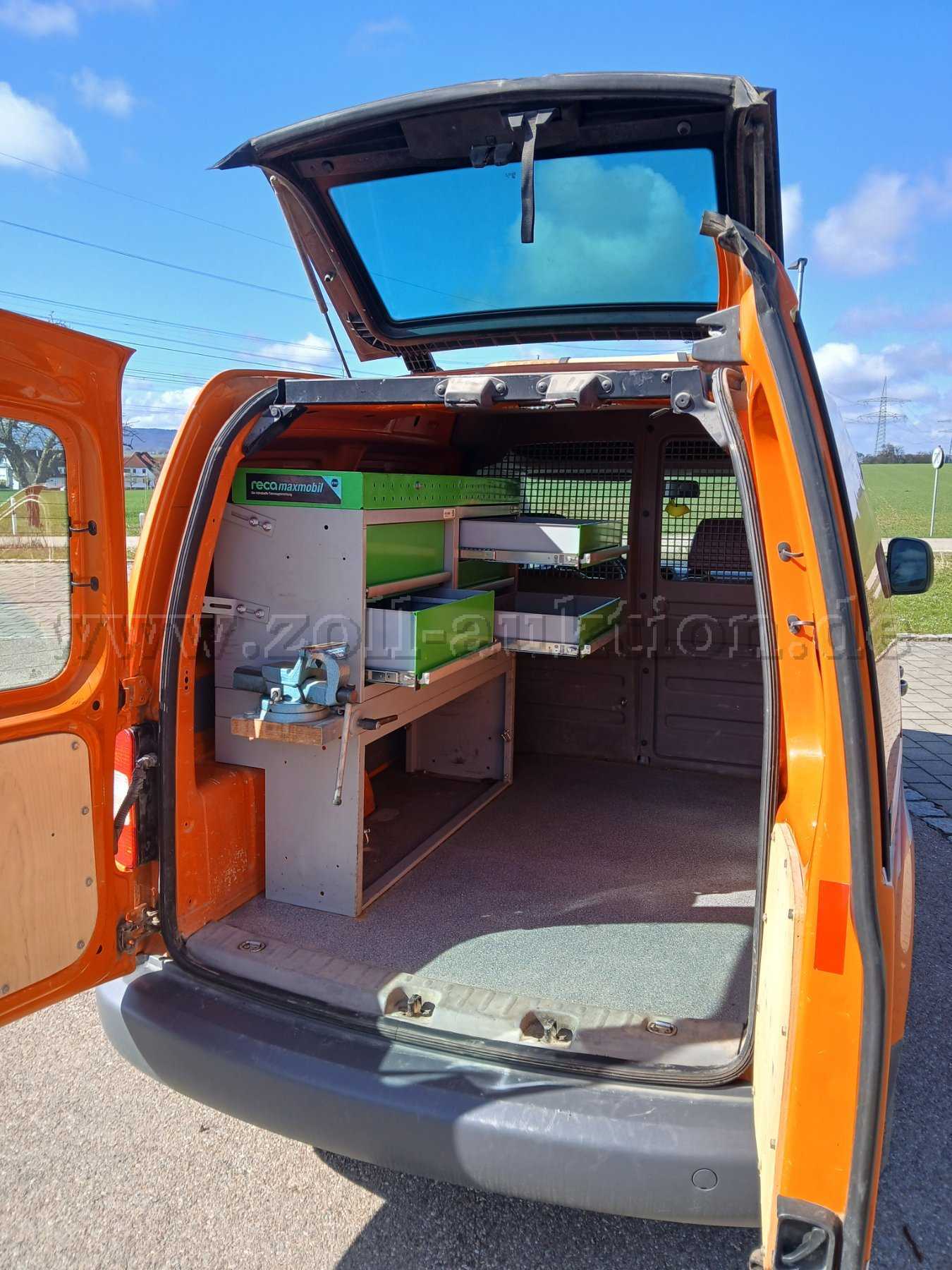 Regal mit Schraubstock im Laderaum festmontiert.