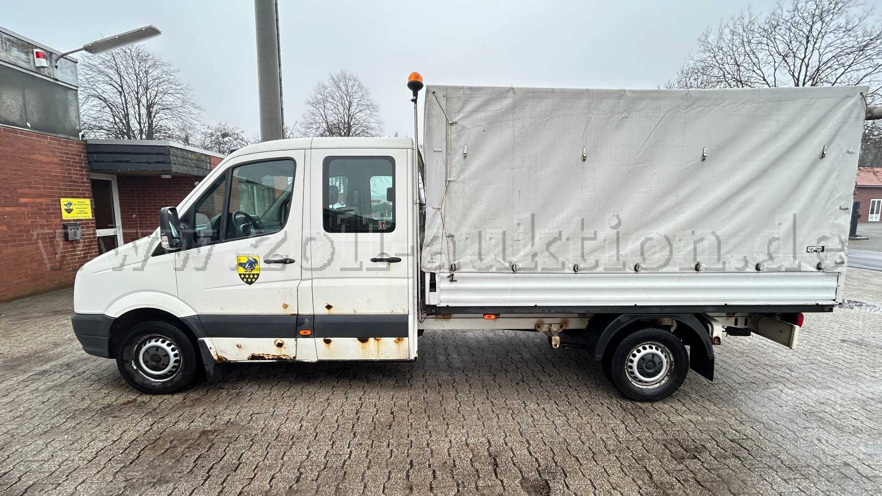 Zur Versteigerung steht ein VW Crafter mit Pritschenladefläche, der bislang als Bauhof-Fahrzeug eingesetzt wurde. Das Nutzfahrzeug eignet sich besonders für Handwerksbetriebe, Bauunternehmen, kommunale Einrichtungen sowie den Garten- und Landschaftsbau.
