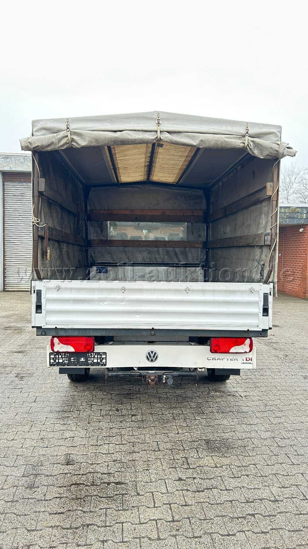 Der VW Crafter ist mit einer robusten, Pritschenladefläche ausgestattet. Die klappbaren Bordwände ermöglichen ein einfaches Be- und Entladen. Die Ladefläche bietet ausreichend Platz für den Transport von Werkzeugen, Maschinen, Baumaterialien oder Grünabfällen.