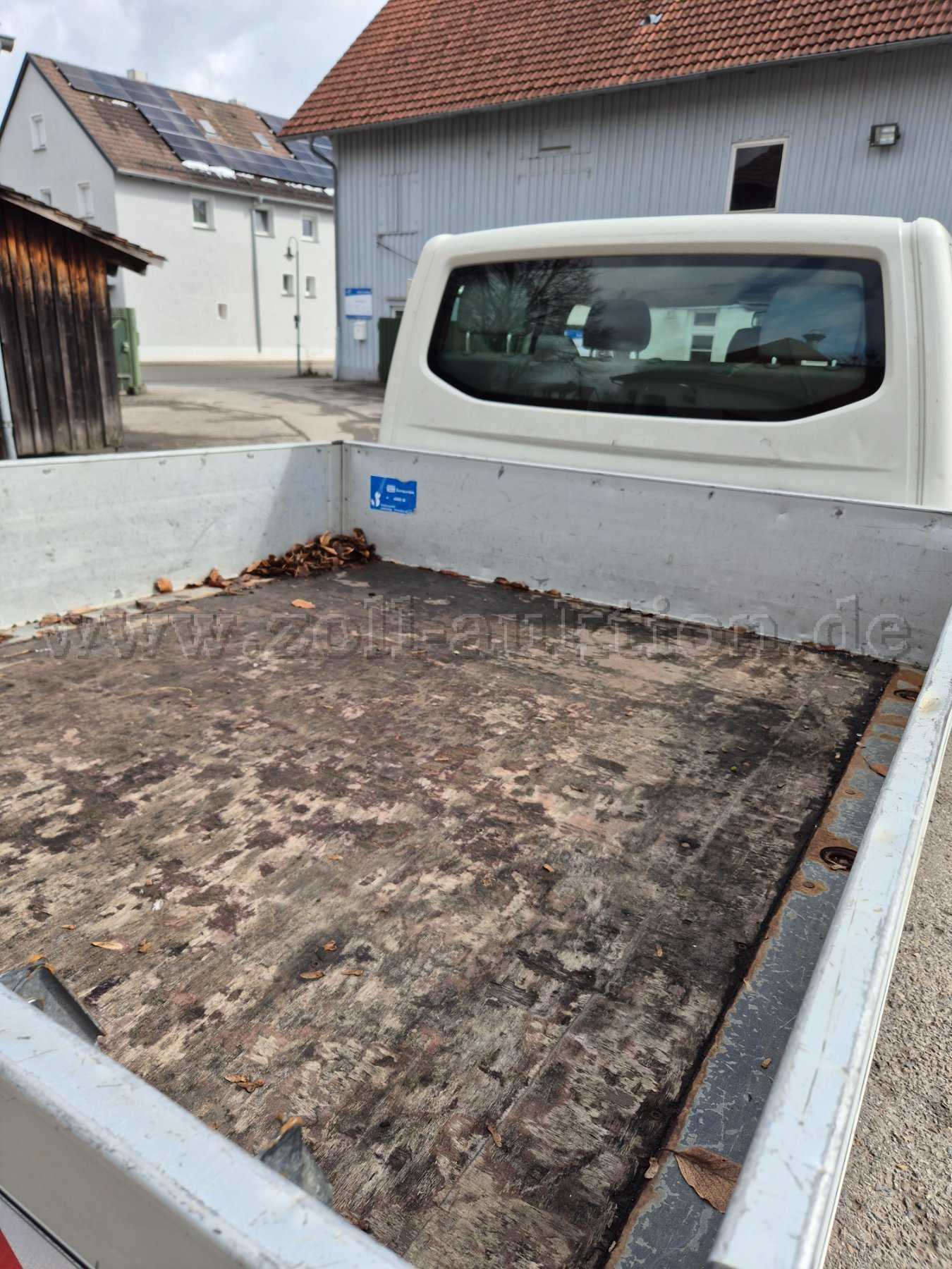 Versteigert wird ein VW Doppelkabine mit Pritsche. Das Fahrzeug war bis zur Abmeldung 11/2025 in Betrieb. Das Fahrzeug hat dem Alter entsprechende Gebrauchsspuren, Dellen, Kratzer, Rostansätze, Durchrostungen sowie Spuren von Rückbauten. Die Haupt- und Abgasuntersuchung ist abgelaufen. Ein Wertgutachten sowie eine aktuelle Funktionskontrolle wurden nicht durchgeführt.