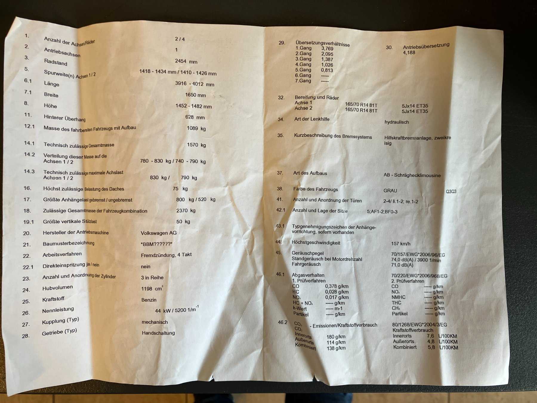 Leistung = 44 kW, Hubraum = 1198 m³