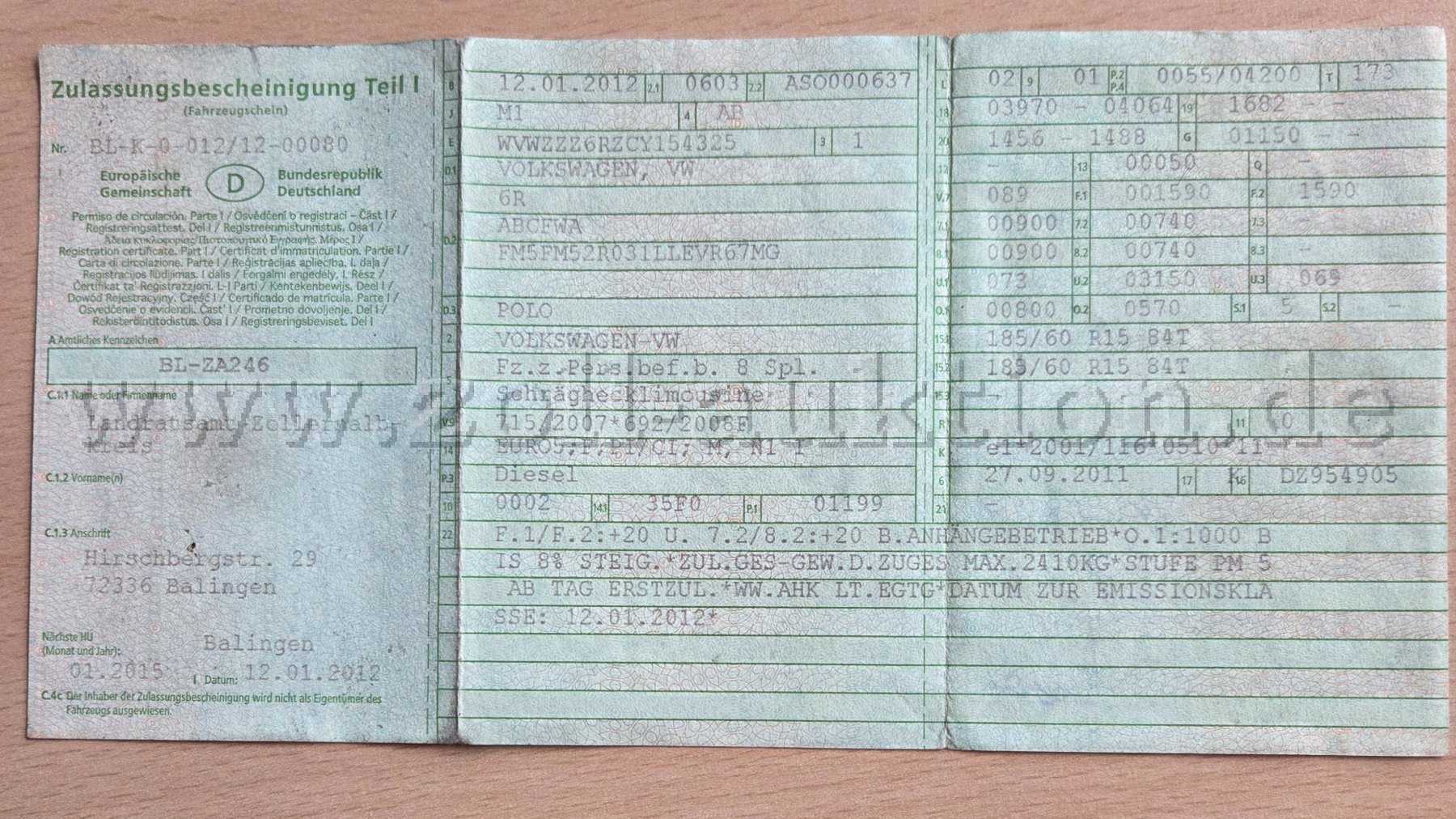 Erstzulassung: 12.01.2012