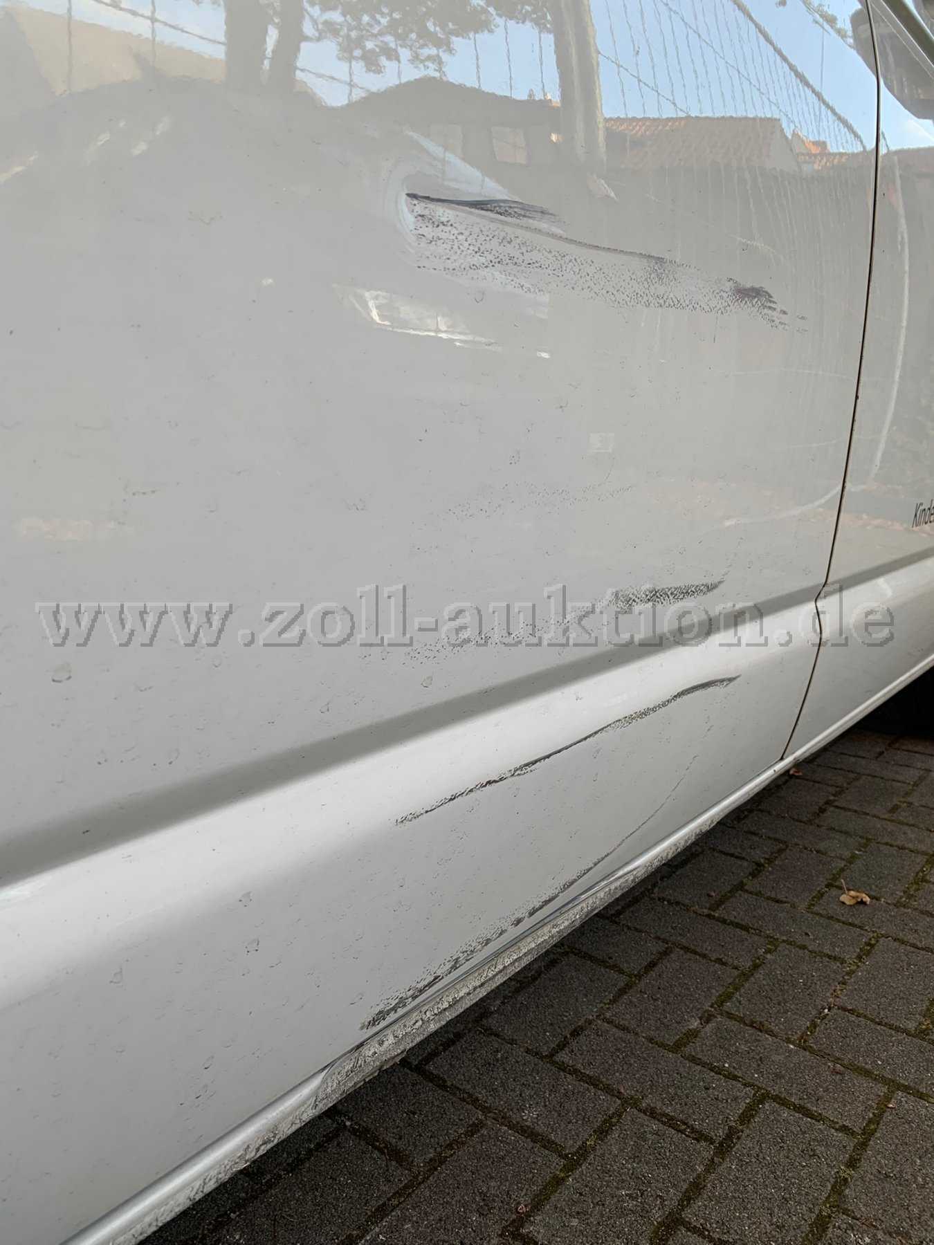 Wie auf den Bildern ersichtlich ist, weist das Fahrzeug altersbedingte Rost- und Gebrauchsspuren auf, bezogen auf Alter und Nutzung (Abnutzungen, Beulen, Dellen, Kratzer und Anrostungen/Korrosionsschäden). Siehe Beule/Delle Schiebetür und darunter am Schweller, sowie in der Heckklappe.