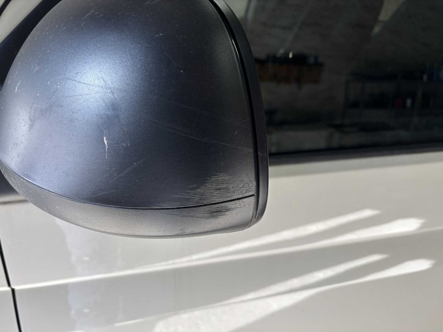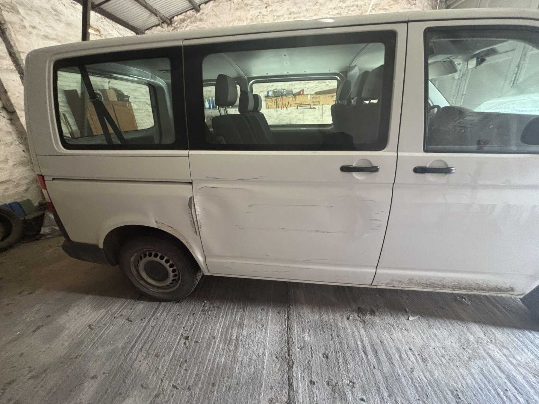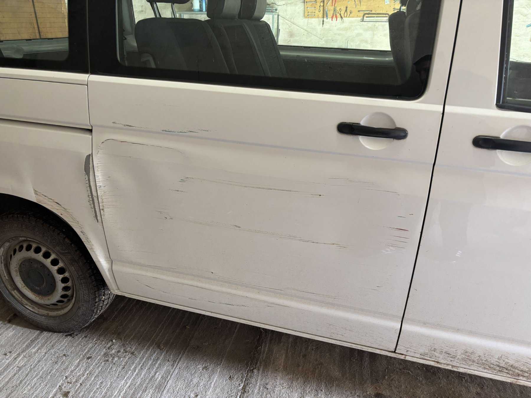 Seitenwand, Schiebetür eingedrückt; linker Außenspiegel verkratzt; Heckklappe mehrfach