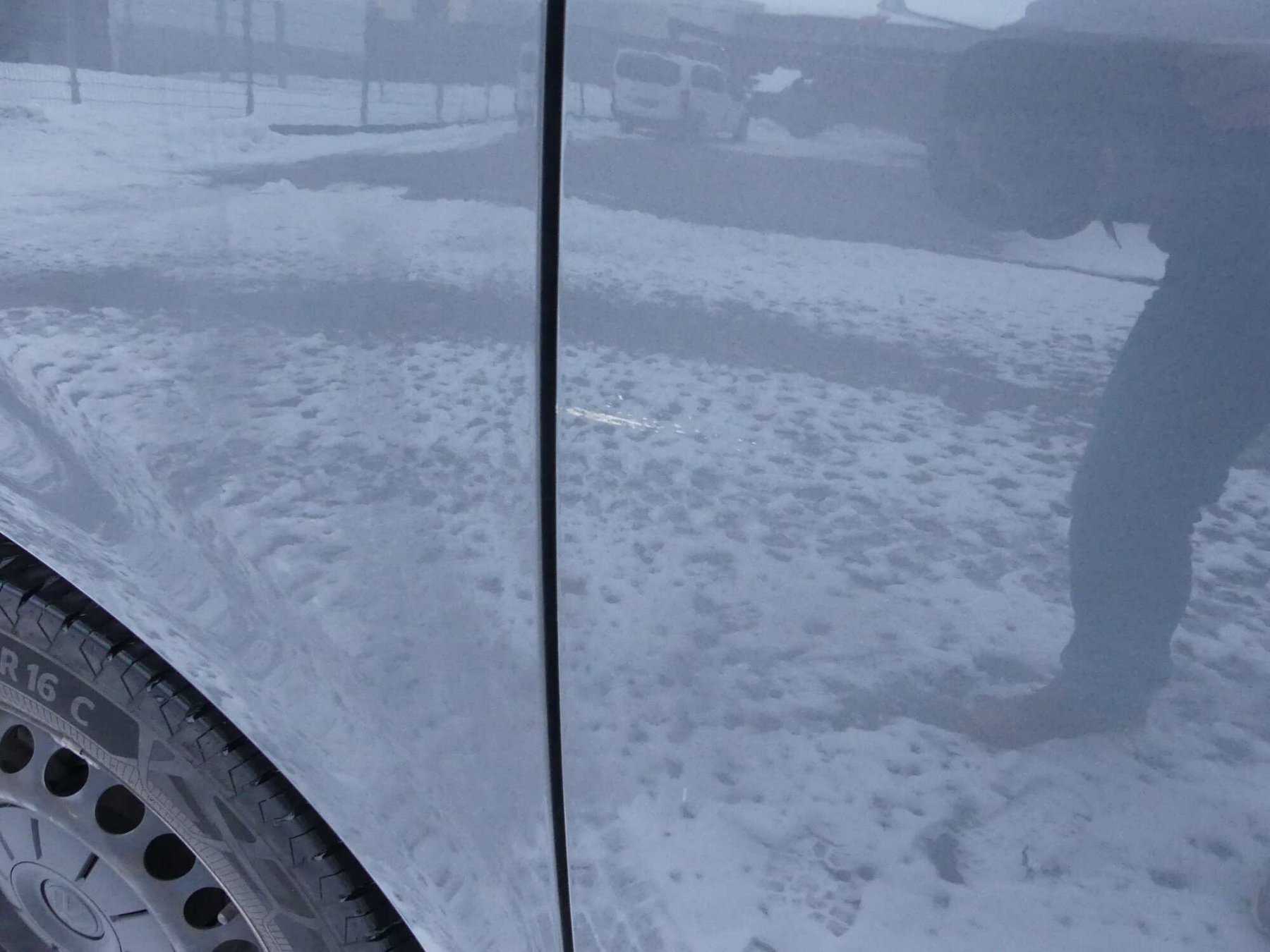 · Kratzer unterschiedlicher Länge am Fahrzeug rundum, u.a. in den Griffmulden der Türen, Türen, Kotflügeln, Seitenteilen, Gehäuse der Außenspiegel, Längsschwellern unterhalb der Türen, Motorhaube, Heckklappe, an der vorderen und hinteren Stoßfängerverkleidung.