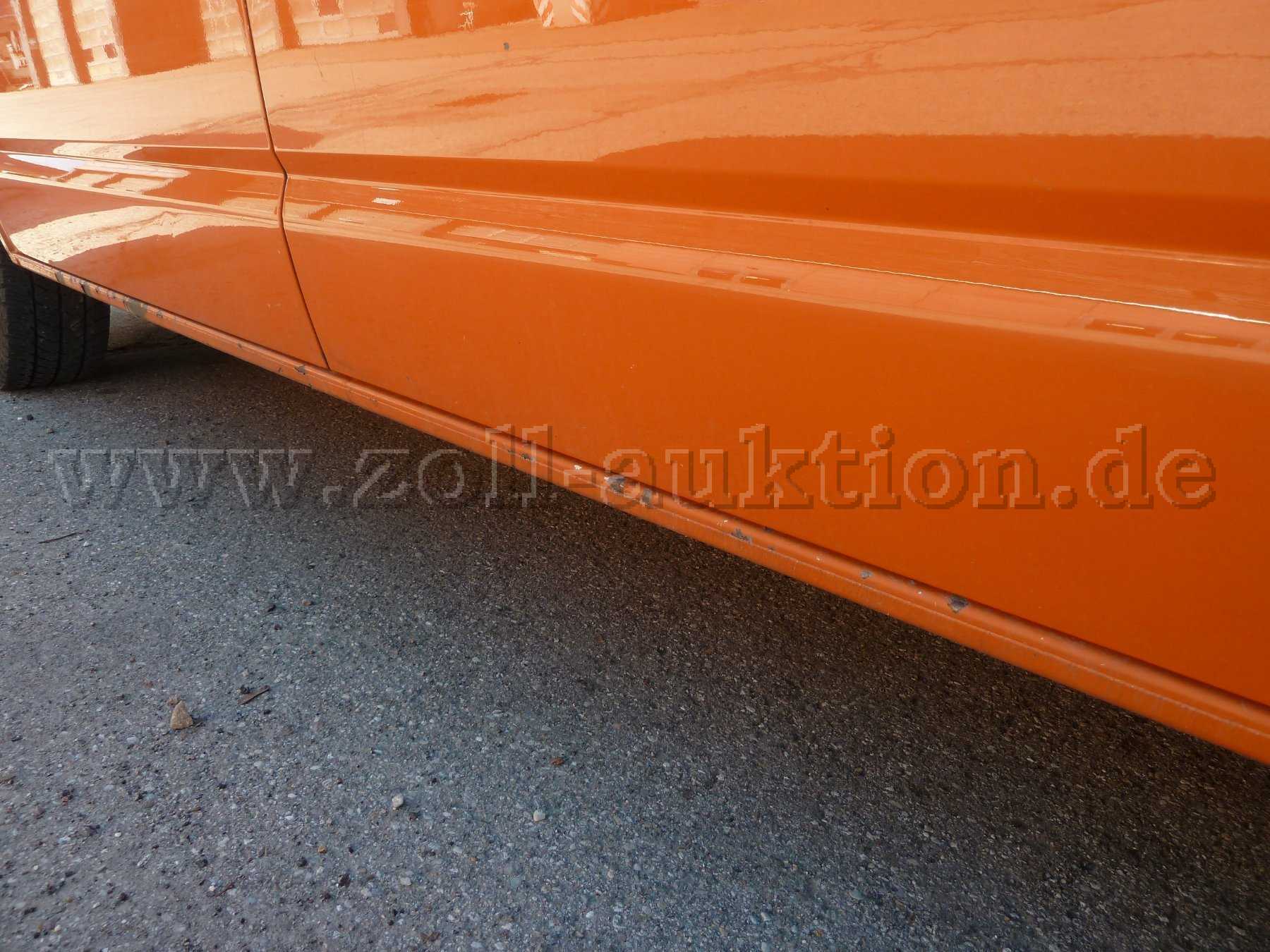 Rost / leichter Anfahrschaden Seitenteil hinten links, Rost am Einstieg vorne links, Rost an der Fahrertüre unten, Klarlackabblätterung A-Säule links, Steinschläge an der Motorhaube, leichter Anfahrschaden vorne rechts, Rost am Einstieg rechts (Vorder- und Schiebetür), Rost am Seitenteil hinten rechts, Beulen und Rost an der Heckklappe aussen unten.