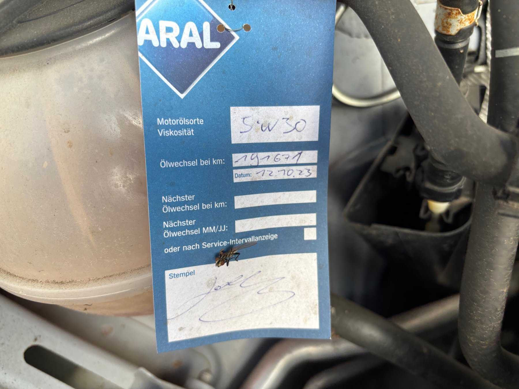 Letzter Service: 10/2023 bei 191671 km (gemäß Ölzettel im Motorraum)