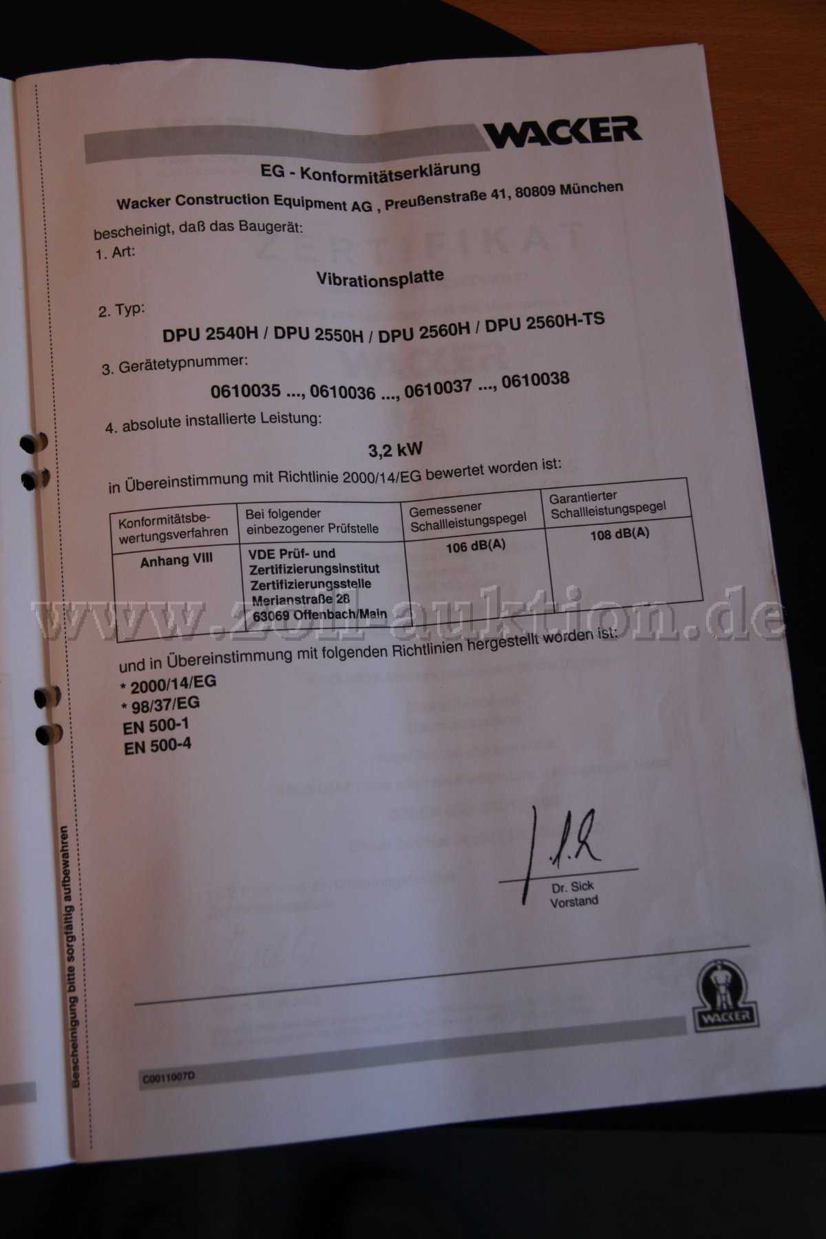 Aus haftungsrechtlichen Gründen kann keine Verladungshilfe gewährt werden. Die Zahlung und Abholung hat nach den Bedingungen der Zollauktion innerhalb von 10 Tagen nach Mitteilung der Modalitäten zu erfolgen. Die Übernahme der ausgesonderten Rüttelplatte erfolgt nach Zuschlag und Zahlung durch den Erwerber. Eine Verlängerung dieser Frist ist nur in Ausnahmefällen und nur nach Absprache möglich. Die Gegenstandsbeschreibung erfolgte nach bestem Wissen und Gewissen. Sonstige auf den Bildern sichtbare Fahrzeuge, Maschinen oder Geräte sind nicht Gegenstand dieser Auktion.