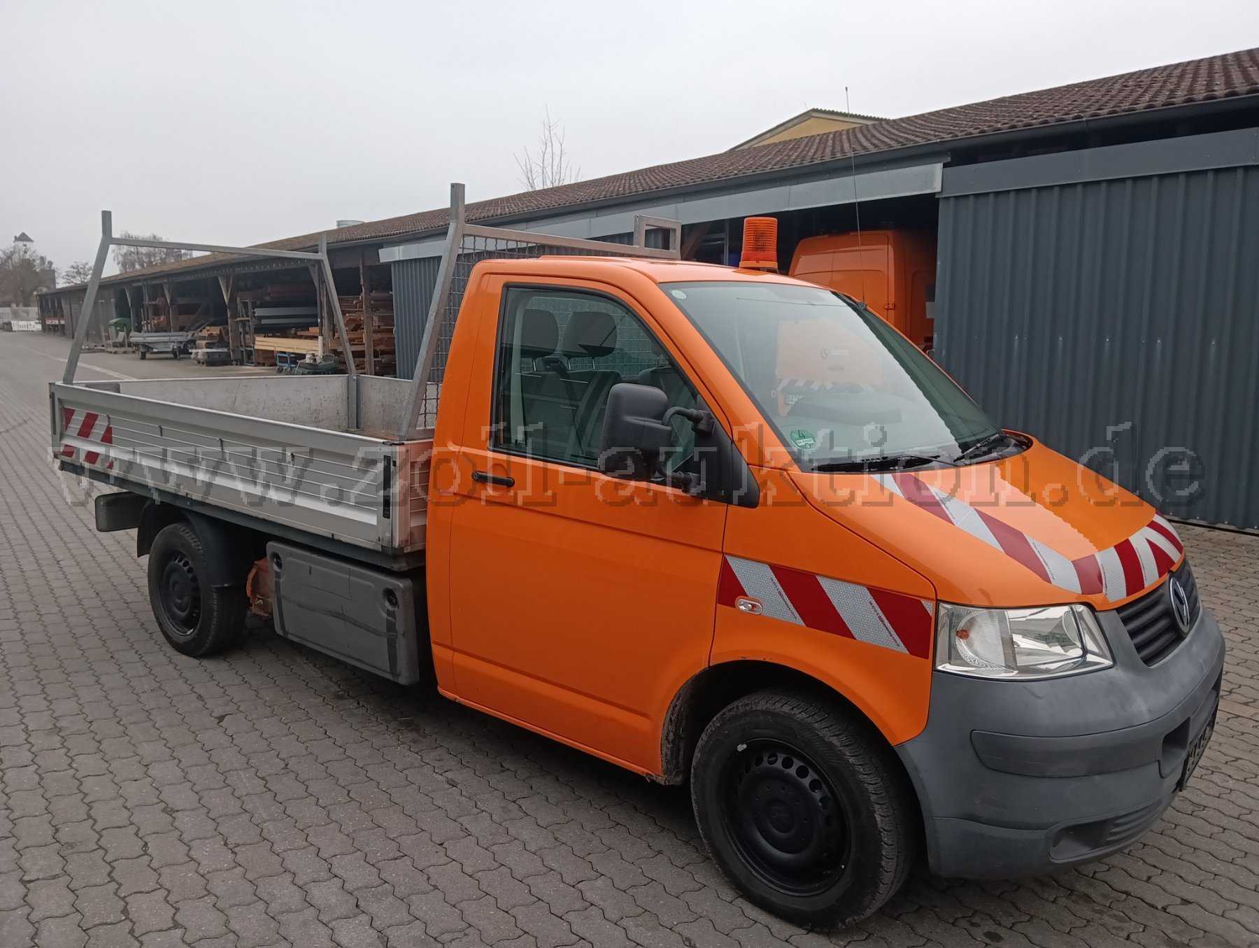 Zur Versteigerung steht ein VW Transporter (Pritschenwagen) des Bamberg Service - Eigenbetrieb der Stadt Bamberg an. Mängel und Beschreibung entnehmen Sie bitte der unten aufgeführten Beschreibung. Bei den eingestellten Fotos können beleuchtungstechnisch bedingte Farbabweichungen zum Original bestehen.