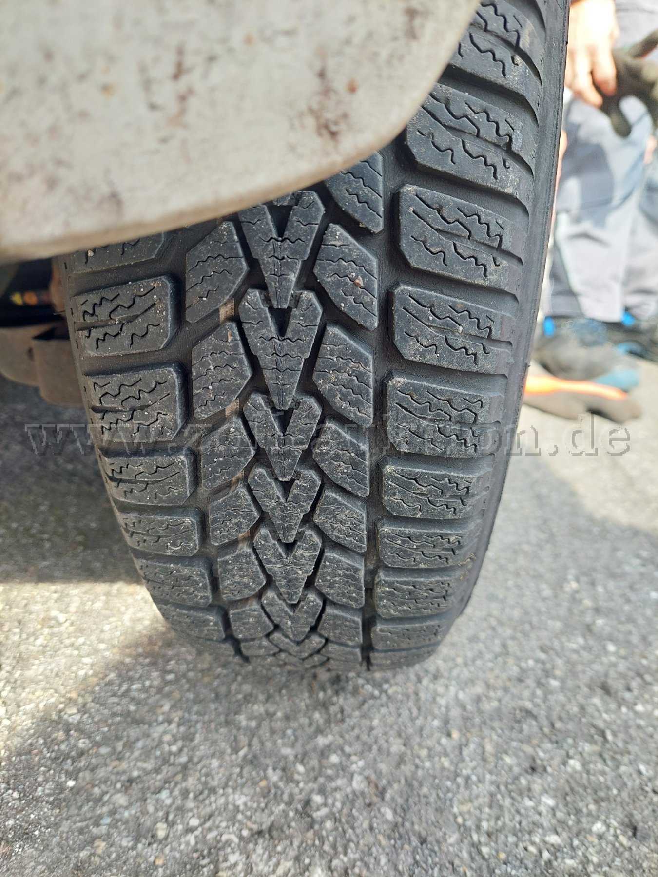 Die Reifen auf der Vorderachse sind links und rechts einseitig abgefahren.