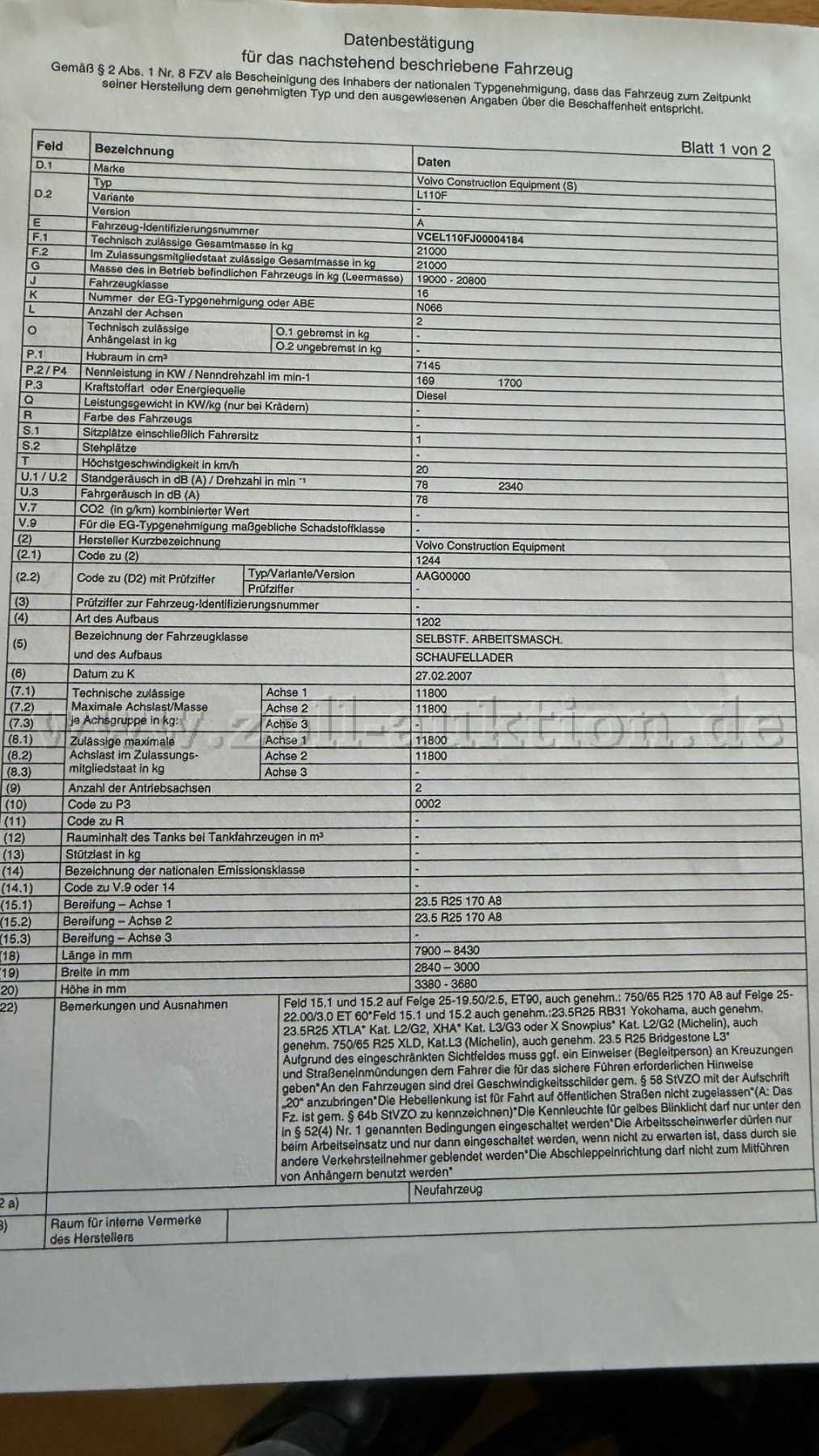 Die Fahrzeugbeschreibung erfolgt auf Grund äußerer Inaugenscheinnahme bzw. an Hand von Betriebsdaten. Das Fzg./Gerät wurde bis zur Außerbetriebnahme (im Herbst 2025) genutzt. Eine Sichtprüfung auf einer Hebebühne erfolgte nicht. Auf die Vollständigkeit des Fahrzeugzubehörs kann keine Gewährleistung gegeben werden (wie Verbandskasten, Bordwerkzeug, Beschreibungen). Es wird eine Besichtigung des Fahrzeuges vor Gebotsabgabe ausdrücklich empfohlen! Eine Besichtigung kann Dienstags in der Zeit von 08.00-15.30 Uhr nach telefonischer Vereinbarung erfolgen.