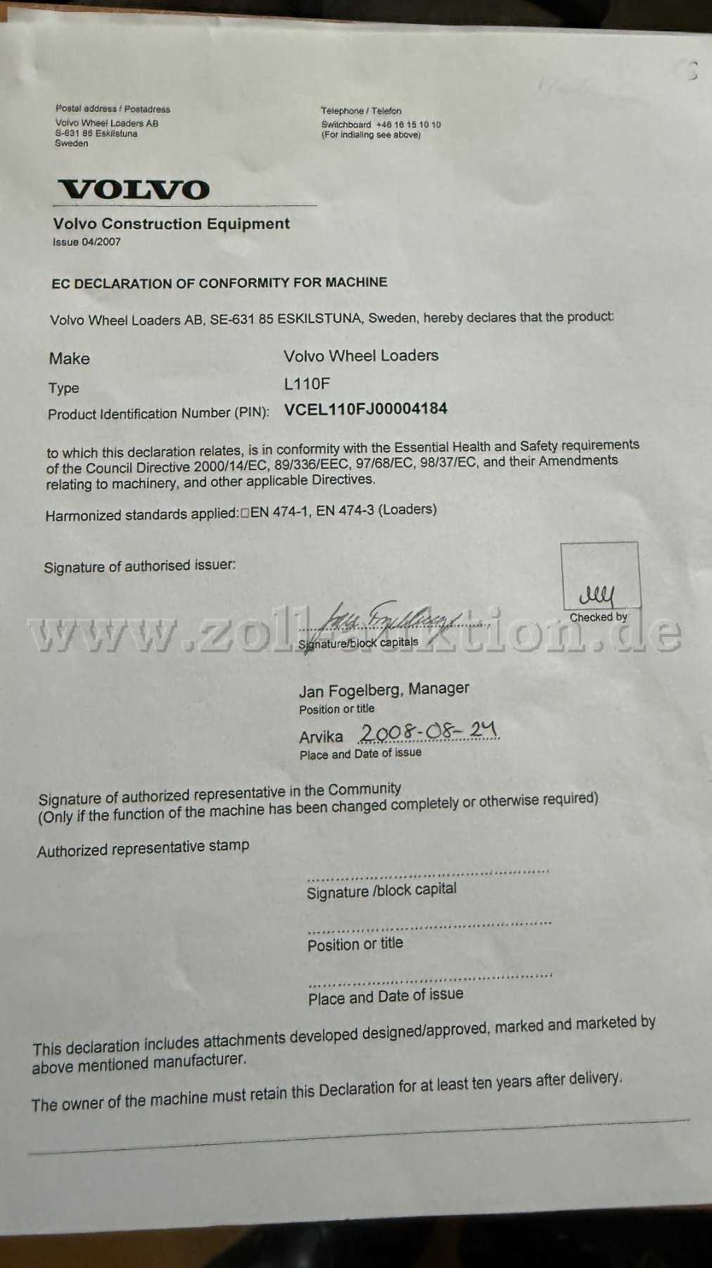 - Es fallen täglich 50,00 EUR Verwahr- bzw. Lagergebühren bei Überschreitung der Zahlungs- und Abholfrist an.