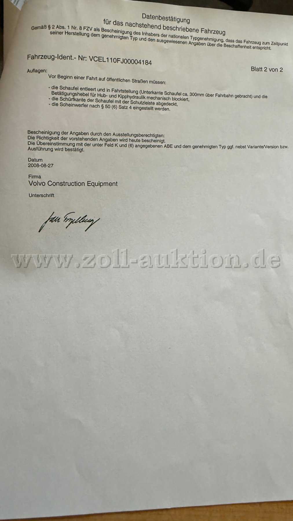 Aus rechtlichen Gründen kann beim Abholen/Verladen keine Unterstützung geleistet werden. Für die Beladung und die Befestigung der Geräte/Fahrzeuge ist selbst Sorge zu tragen. Der Ersteigerer hat die Abholung, die Beladung sowie die Ladungssicherung auf eigene Kosten und Gefahr zu organisieren, zu veranlassen und durchzuführen.