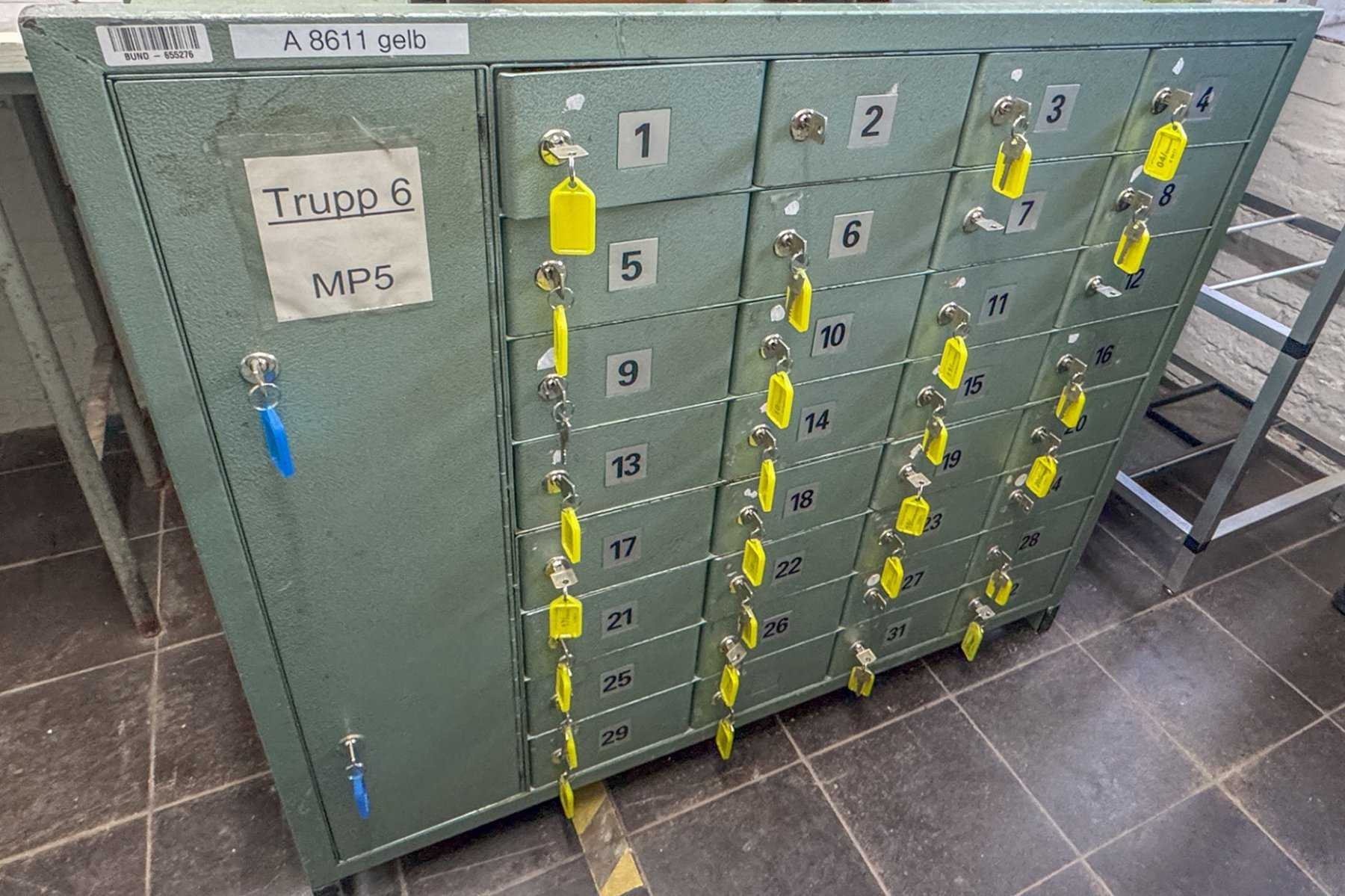 Es handelt sich um einen Metallschrank als Waffenschließfachanlage;