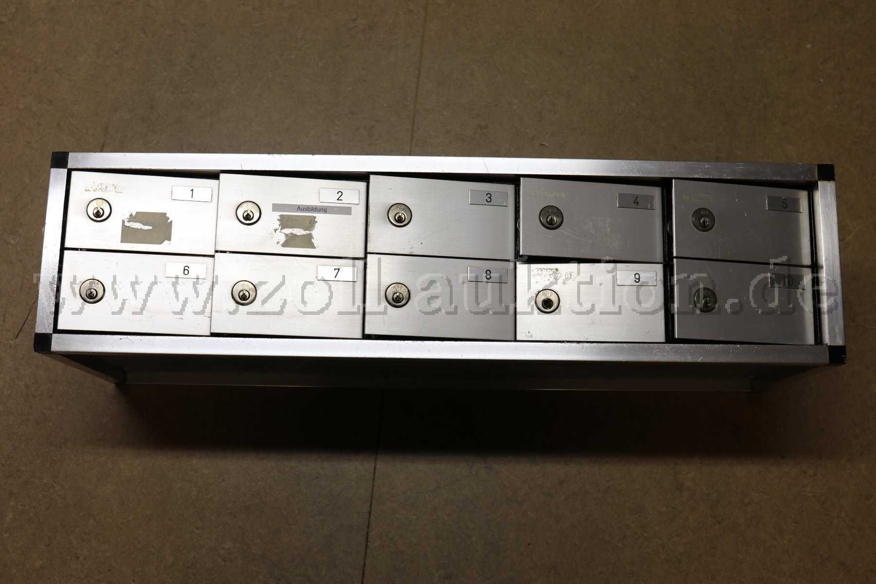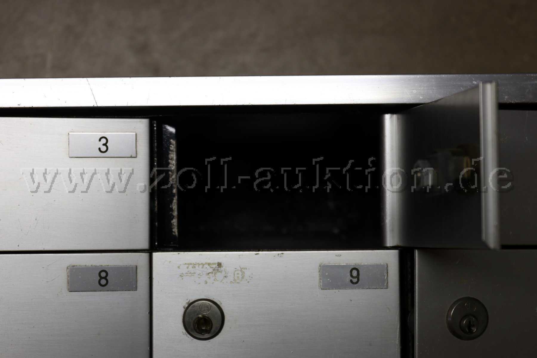 Es sind nur 6 Schlüssel vorhanden (für die Fächer 3, 6, 7, 8 und zweimal 10). Außerdem ist zusätzlich ein Hauptschlüssel vorhanden, der alle Fächer öffnet.