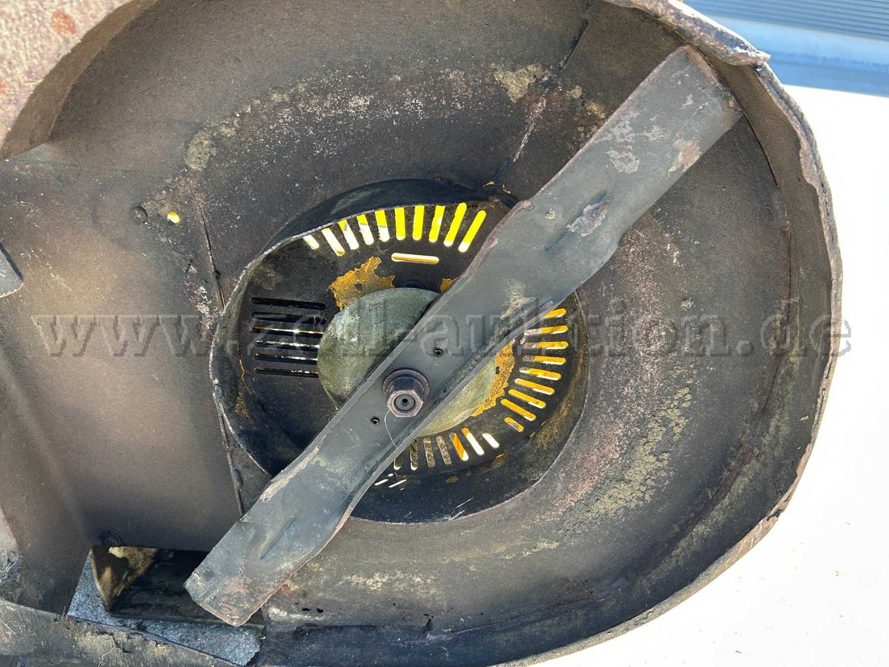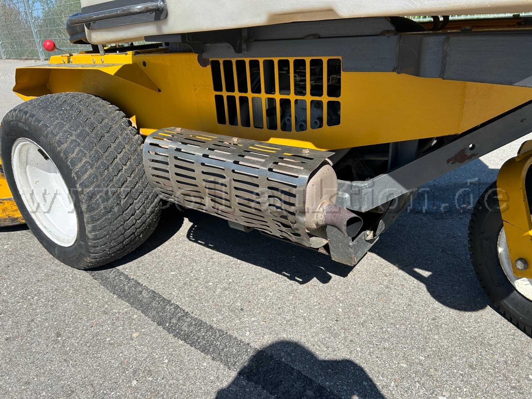 Dem Alter und der Nutzung entsprechend weist die Maschine Gebrauchsspuren am Rahmen, an den Reifen, am Fahrwerk sowie am Mähwerk auf.