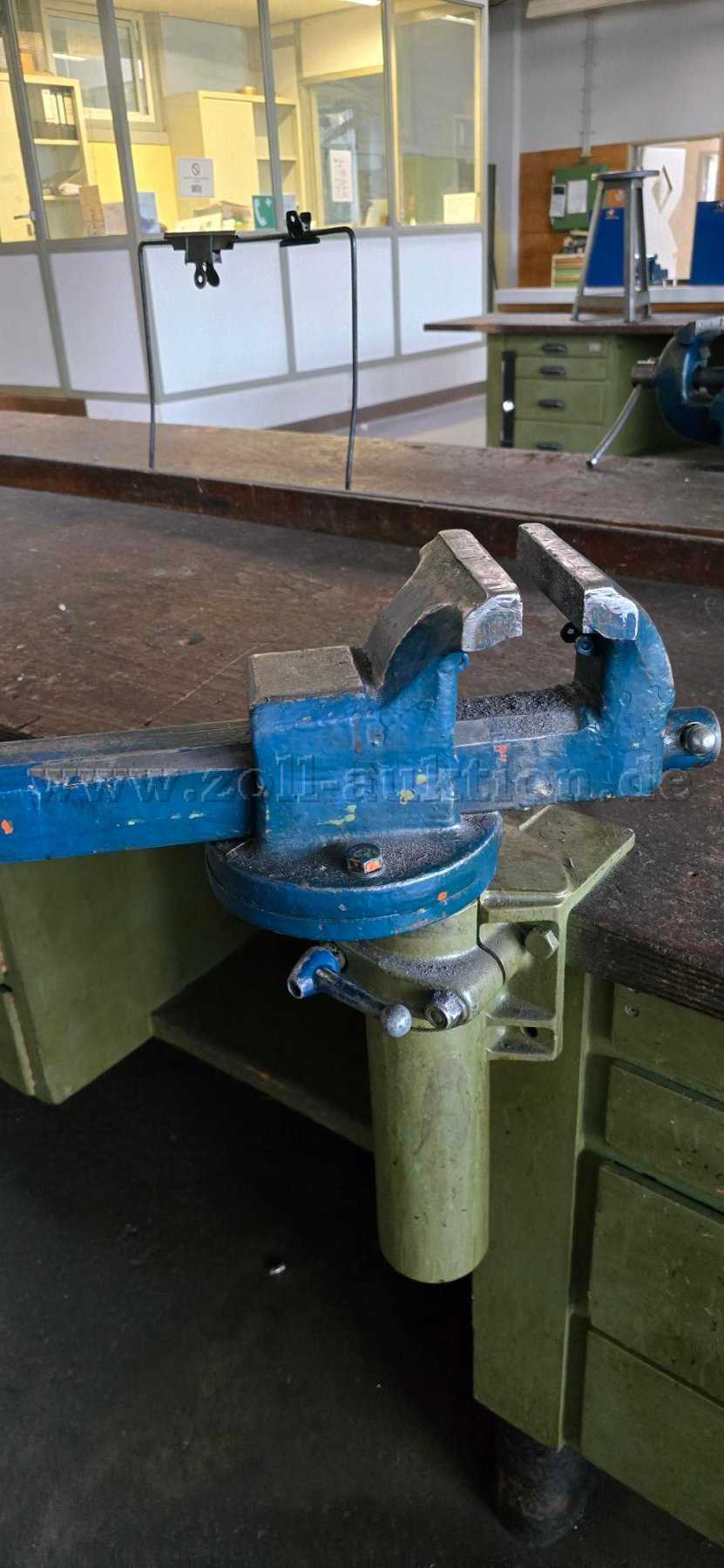 Der Auktionsartikel hat die durch Benutzung entstandenen typischen Gebrauchs-, Verschleiß- und Abnutzungsspuren in Form von Schmutzanhaftungen, Abrieb, Kratzern, Farbabblätterungen. Die Werkbank wird so, wie auf den Fotos erkennbar, angeboten. Die Werkbank wurde ausschließlich im Schulbetrieb verwendet