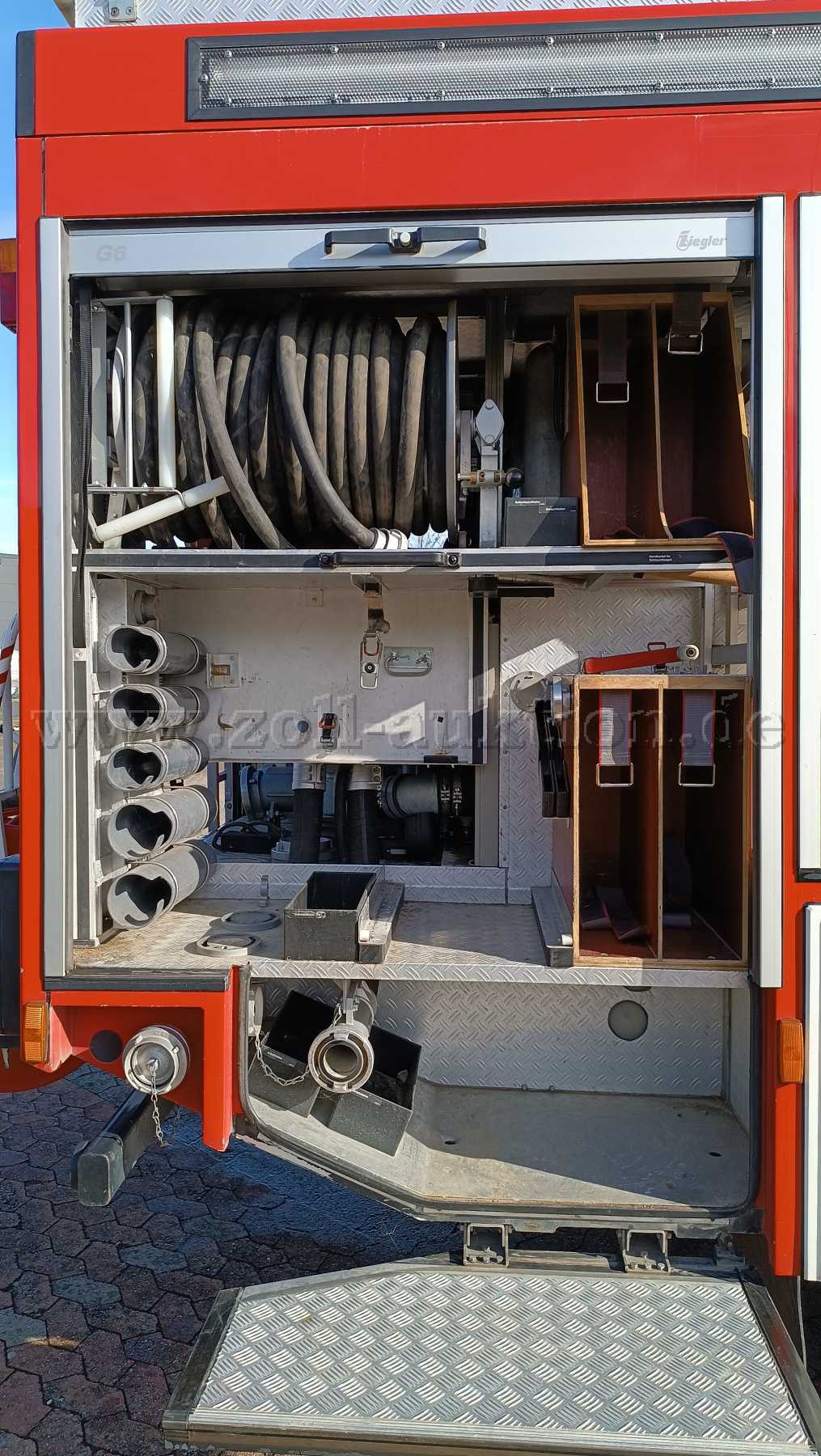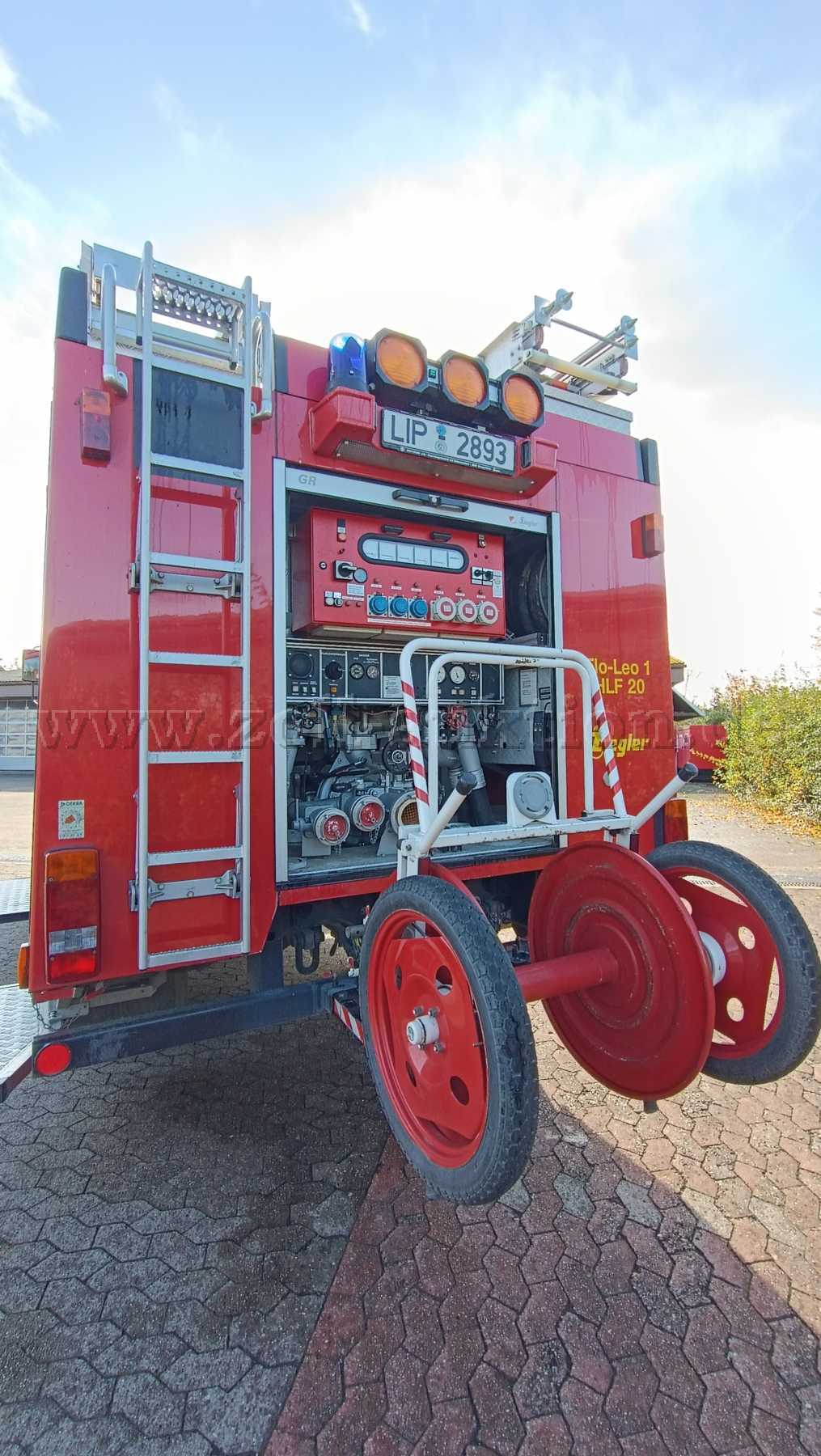 Haspel (ohne Schläuche) und 3-teilige Schiebeleiter verbleiben am Fahrzeug. Der Funk wurde ausgebaut.