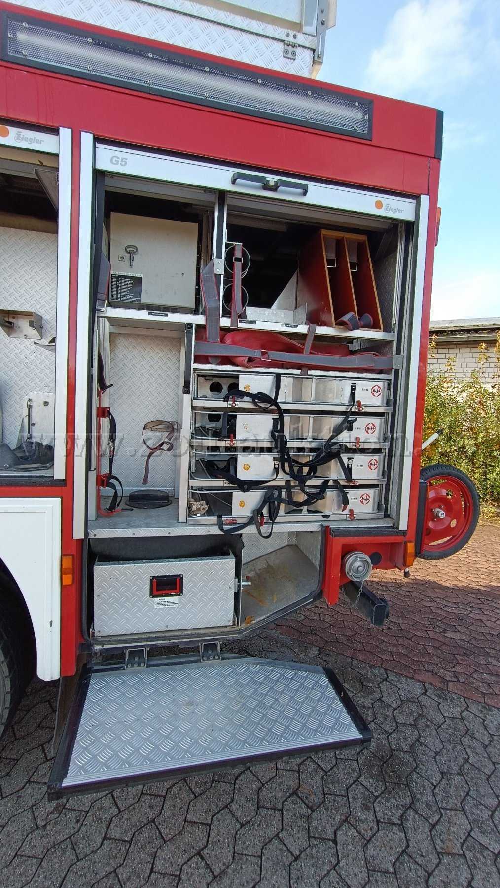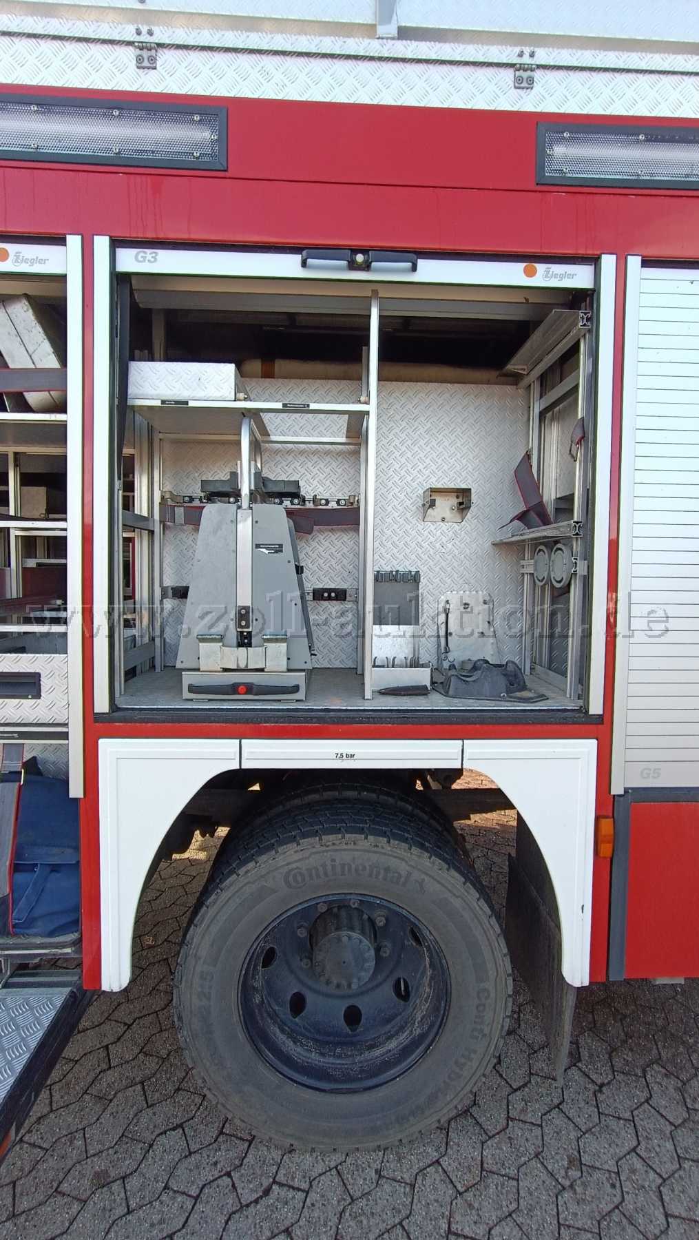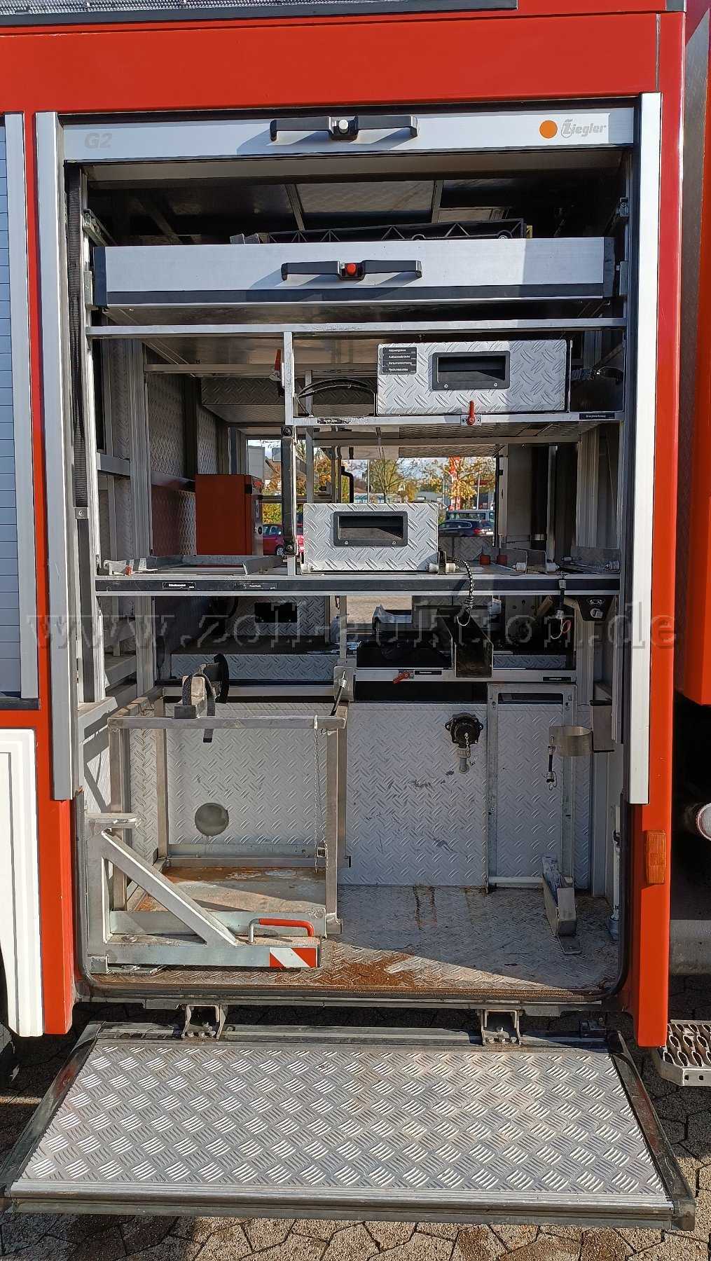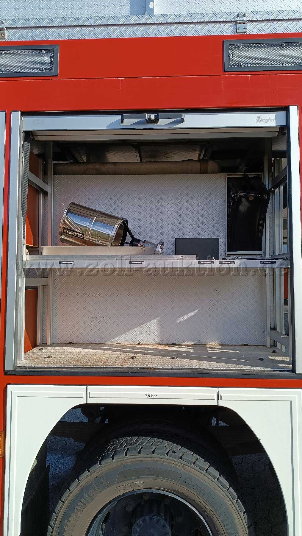 Eingebaute FP24/8 und Wassertank 1600 L; Lichtmast, Stromerzeuger 23 KVA, Seilwinde 55KN, Sondersignalanlage, Gruppen-Kabine mit 2 Plätzen für Atemschutzgeräte, Staufächer, Fremdeinspeisung, Anschluss Ladeerhaltung; Reifen von 2019 (Profil zw. 12 – 15 mm), neue Kraftstofffilter, Dieseltank gereinigt, Getriebe wurde 2016 bei 20778 km getauscht und Kupplung erneuert.