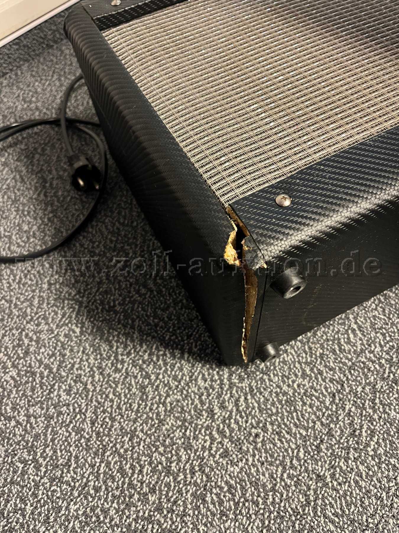 Der Fender Gitarrenverstärker wurde auf Funktion und Klang überprüft. Der Verstärker ist von außen beschädigt, ist in der Funktion aber nicht eingeschränkt. Wattangaben sind nicht angegeben. CE Kennzeichnung auf allen Geräten vorhanden. Siehe Bilder.
