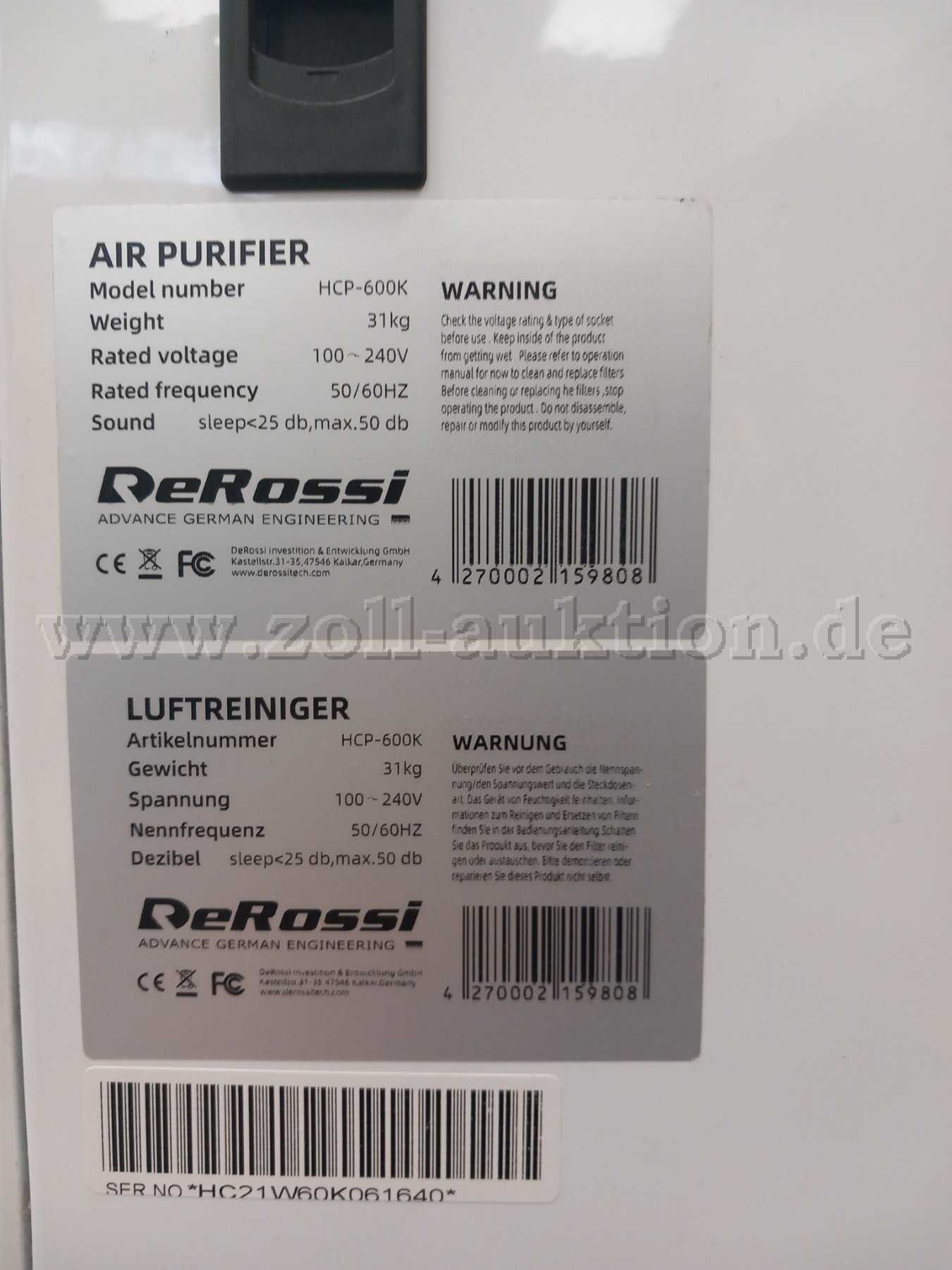 1 deRossi Luftreiniger HCP 600K