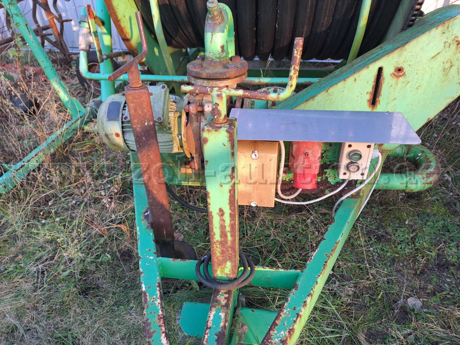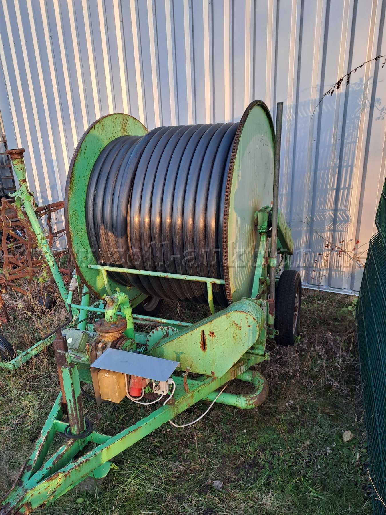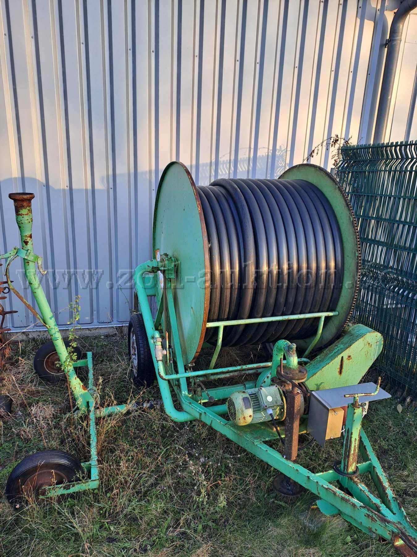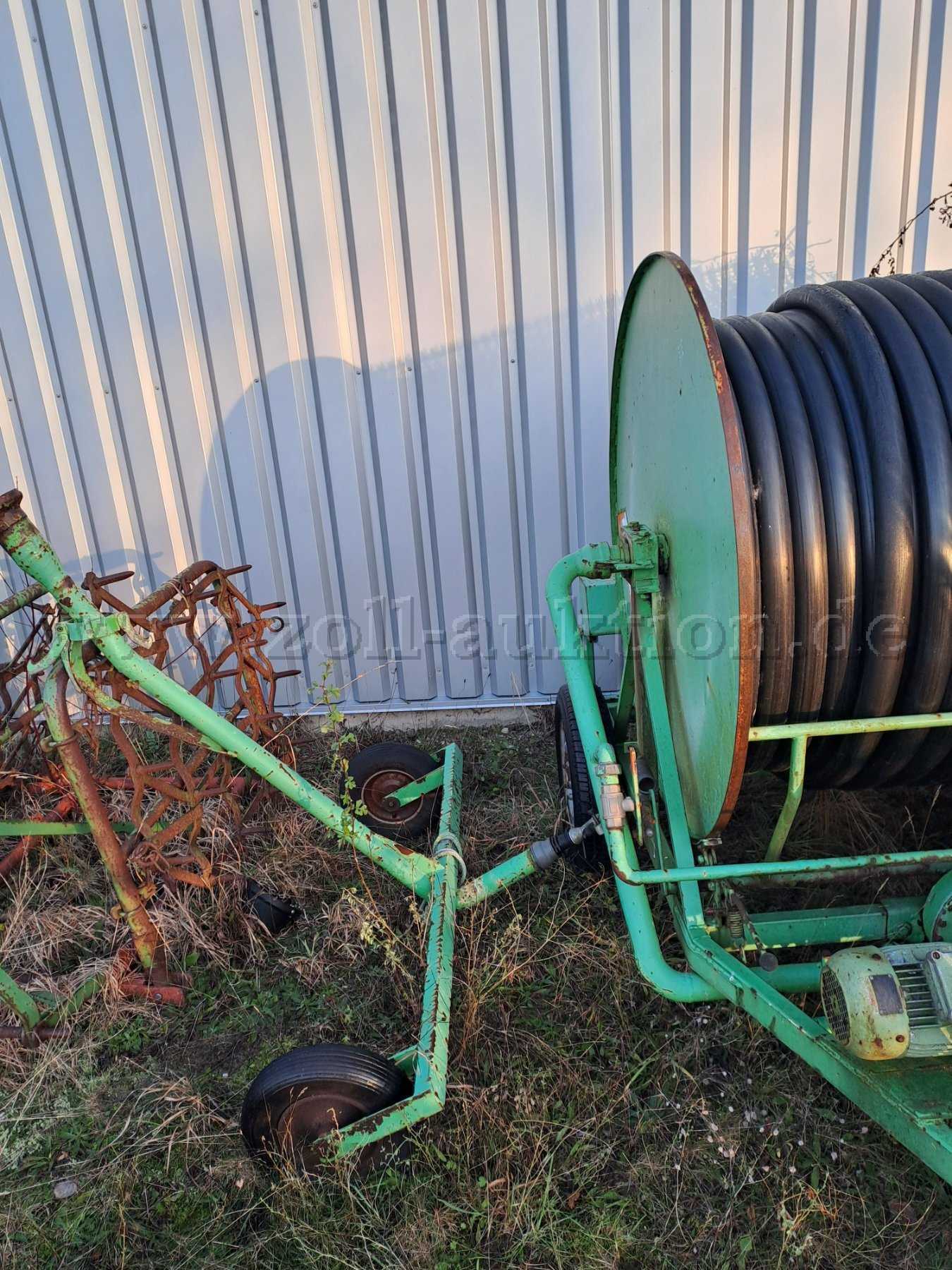 Die hier angebotene Beregnungsanlage (Baujahr 1985) verfügt über eine 2 Zoll Leitung mit einer Länge von 150 m. Für den Transport hat sie eine Deichsel zur Anbringung an ein Zugfahrzeug (zum Beispiel Schlepper). Außerdem ist ein Elektromotor