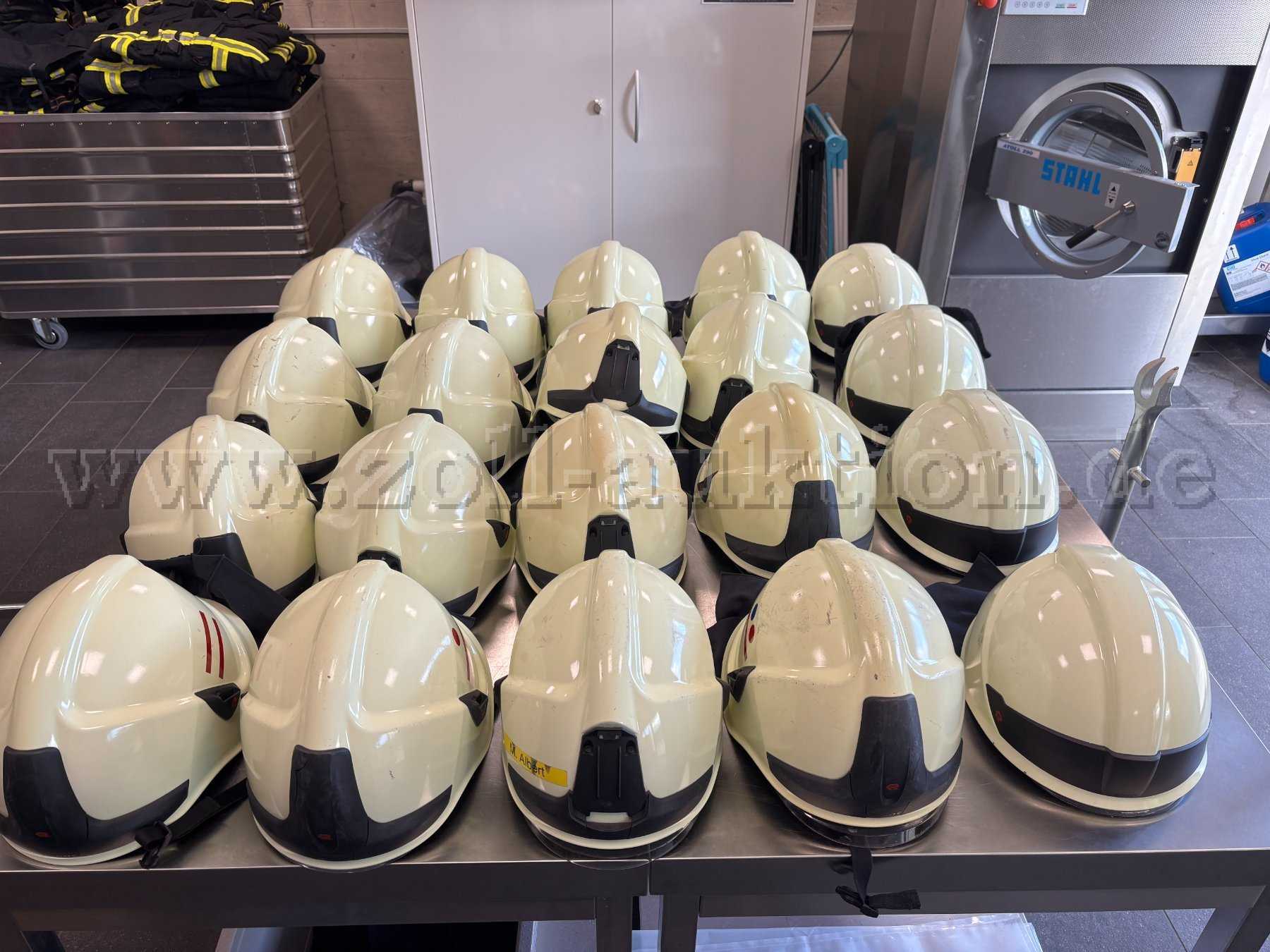 Zur Versteigerung angeboten werden 20 Feuerwehrhelme der Firma Rosenbauer.