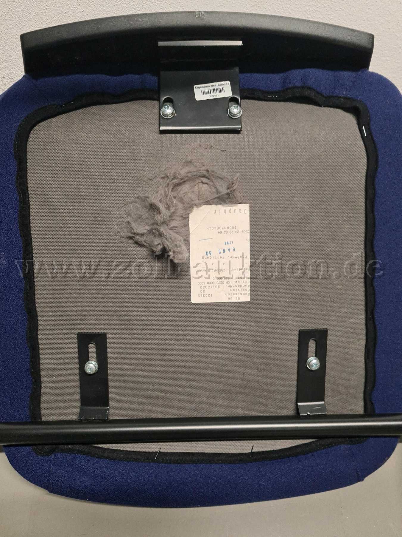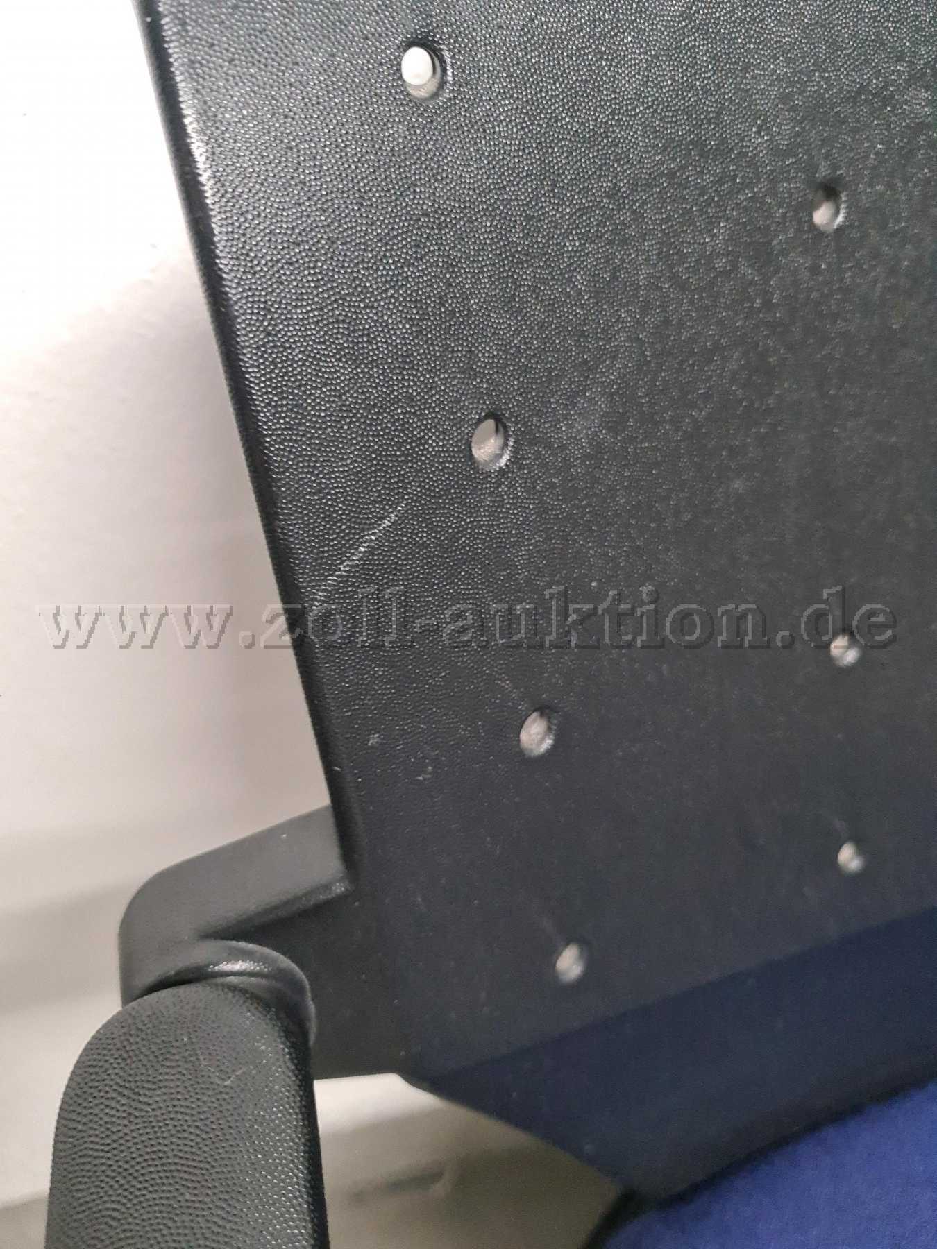 Polster und Gestell verschmutzt, verstaubt, teilweise fleckig, Kratzer am Gestell sowie an Arm- und Rückenlehnen, weitere Gebrauchsspuren vorhanden (Polster auf Sitzfläche aufgeraut, Unterseite beschädigt - siehe Fotos).