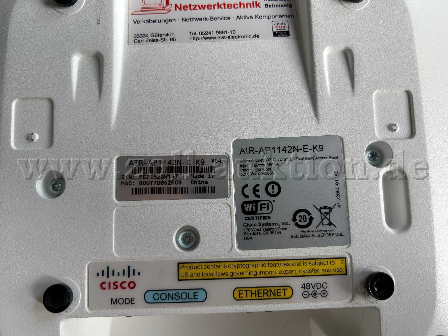 Modell: AIR-CAP1142N-E-K9 (Unified AP, "E" bezeichnet die regulatorische Domäne für Europa - ETSI).