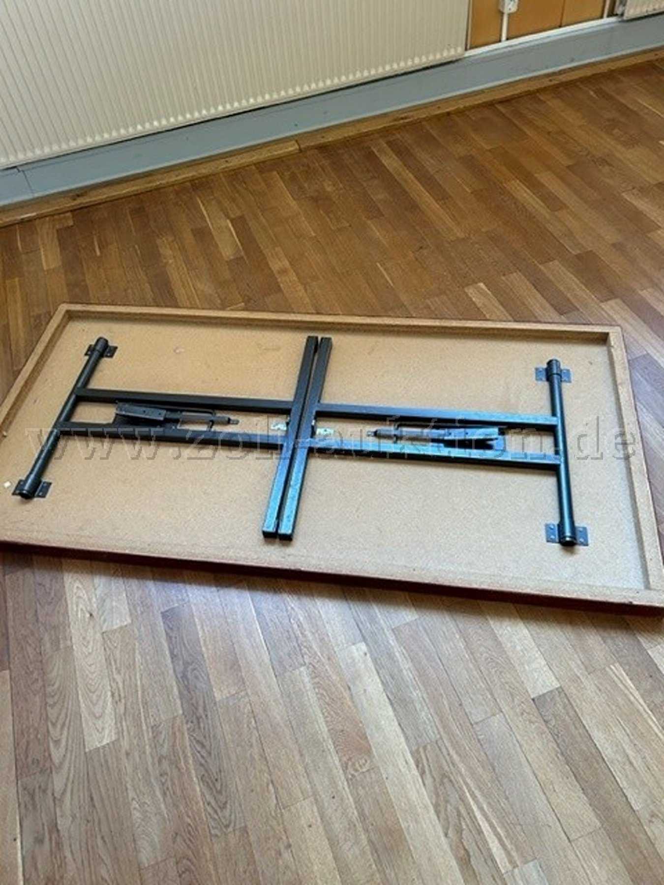 14 der 15 Tische sind Funktionstüchtig. Einer der Tische hat einen defekten Klappmechanismus für die Beine.